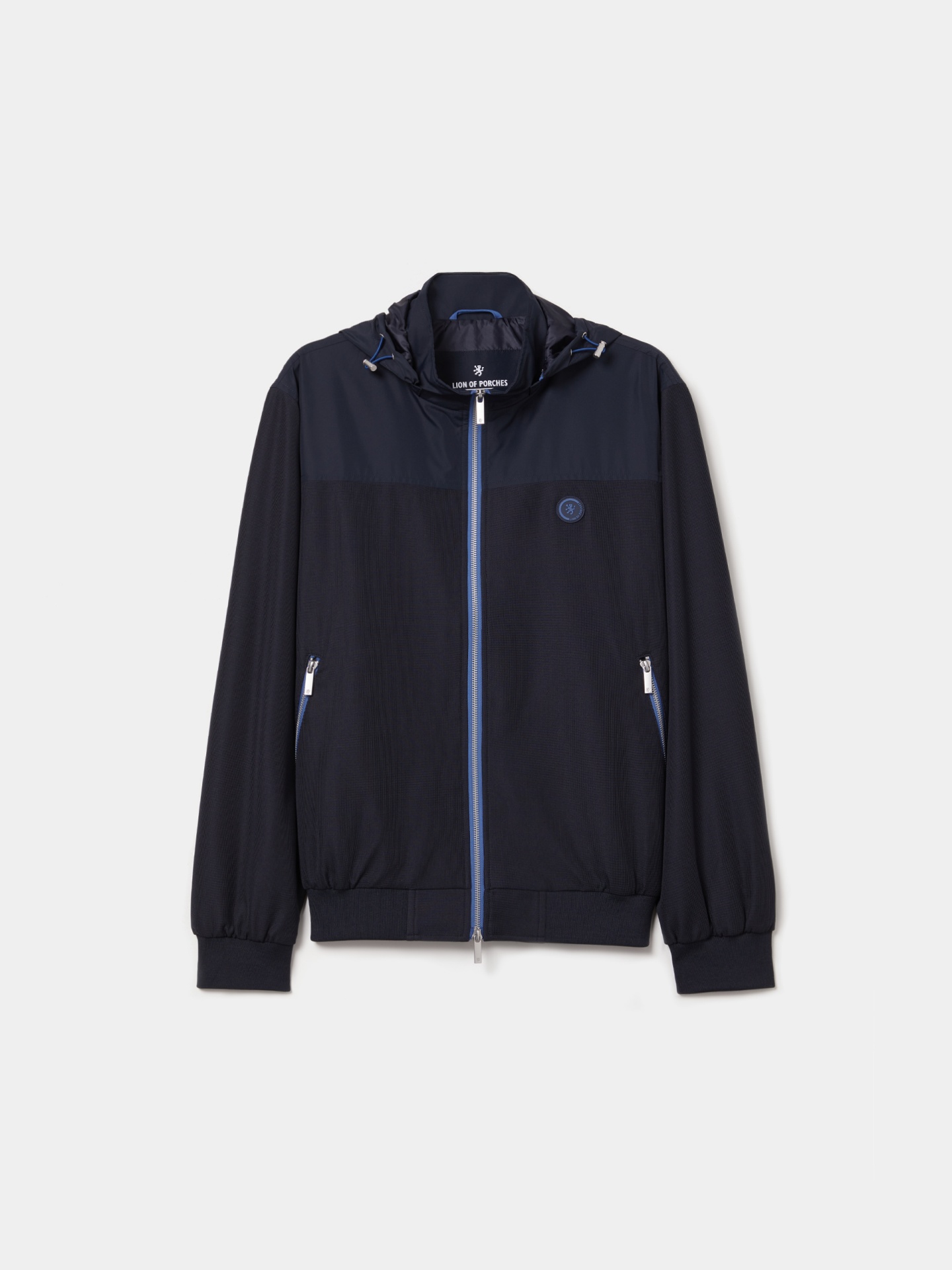 Blusão de manga comprida em mistura de malha e tecido técnico, com um toque de elastano para maior conforto e liberdade de movimentos. Apresenta capuz amovível e ajustável, garantindo praticidade e proteção. Aperta à frente com fecho de correr em cor contrastante. Os bolsos laterais com fecho oferecem funcionalidade, enquanto a base e os punhos em malha canelada asseguram um melhor ajuste. O emblema da marca no peito assina a peça com um toque discreto de identidade. Uma opção versátil para looks urbanos e contemporâneos do dia a dia.