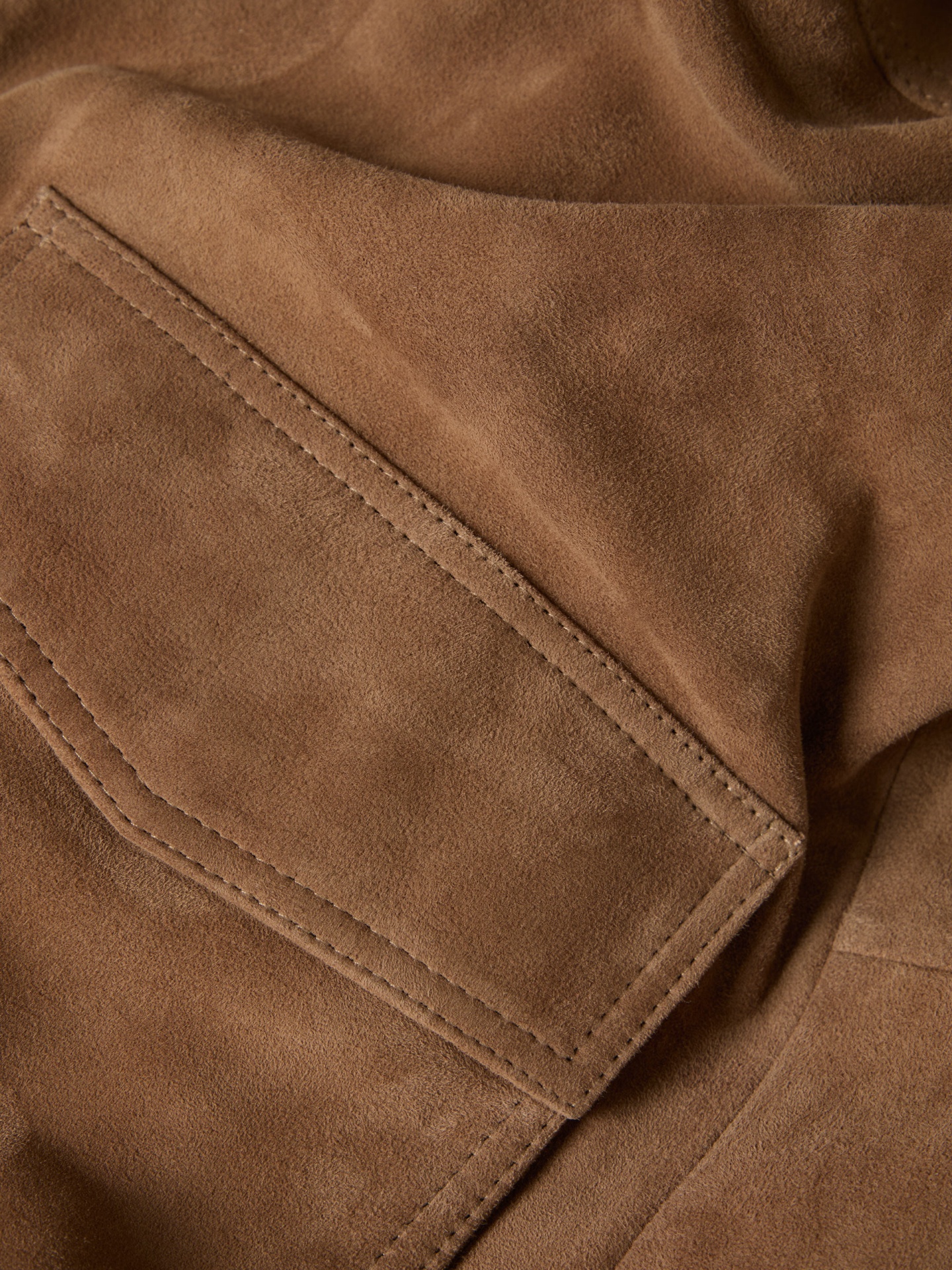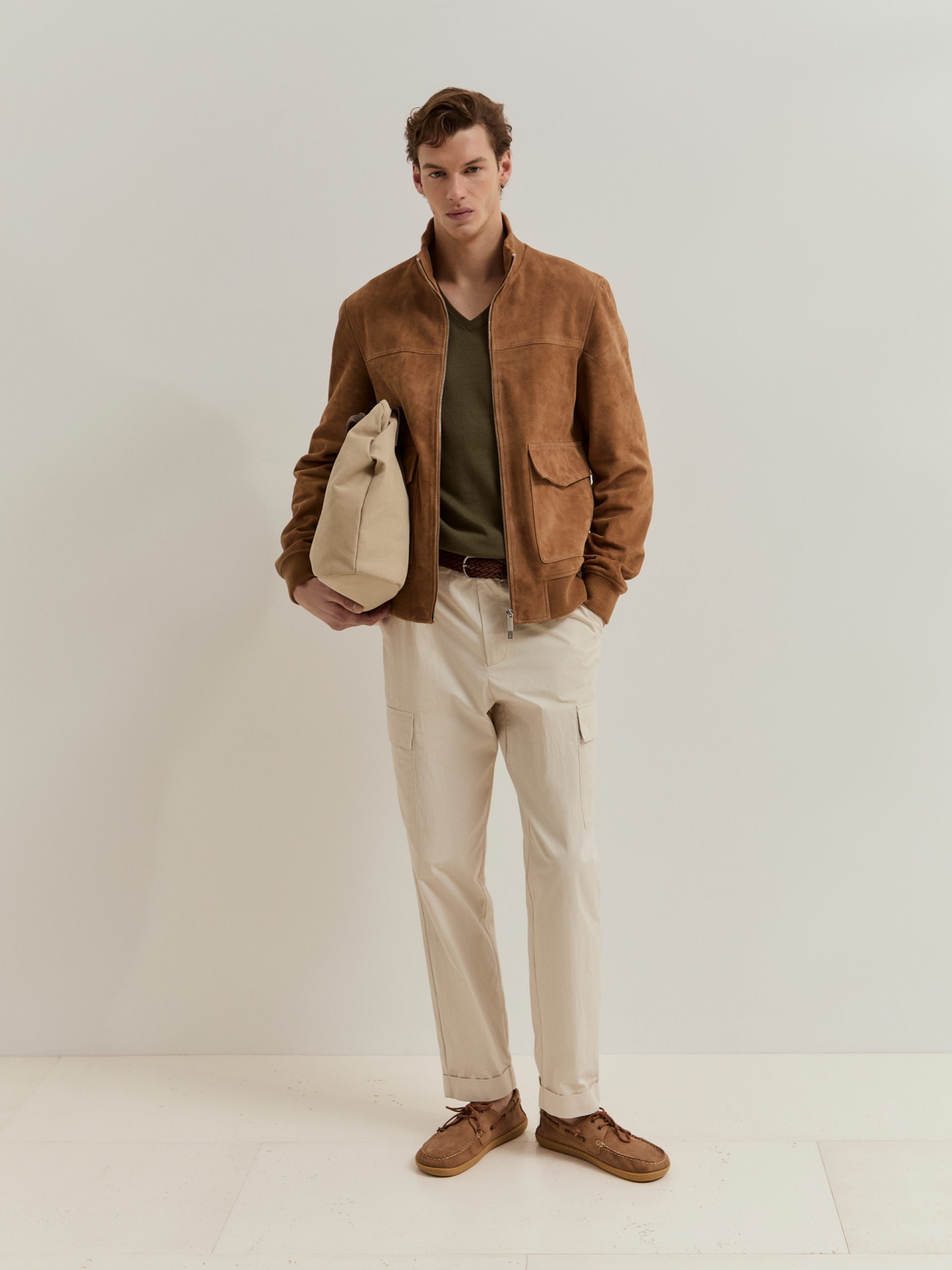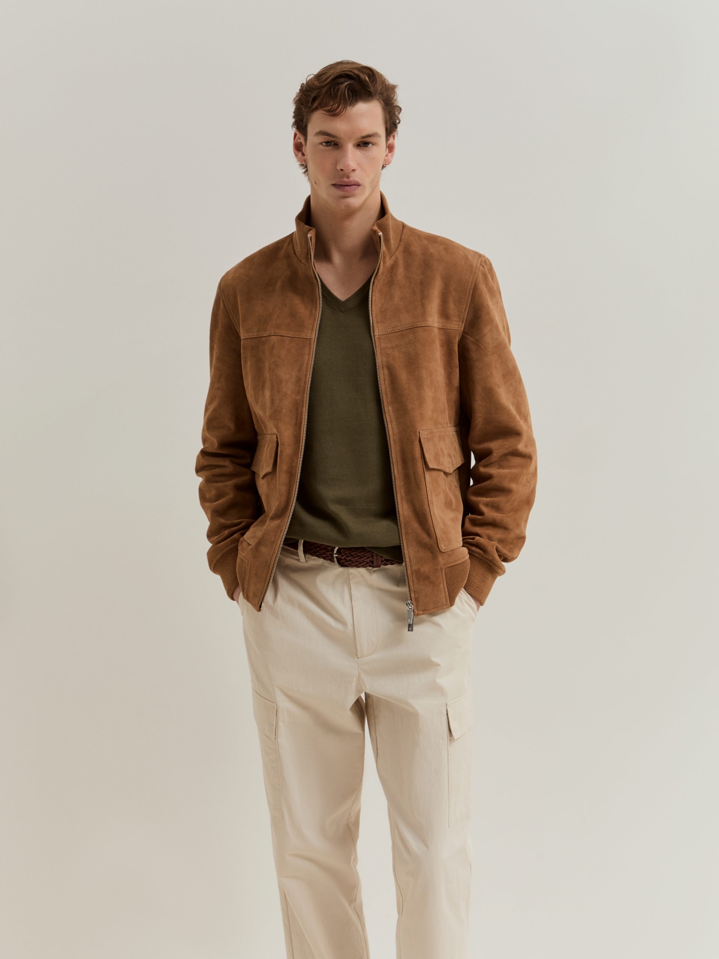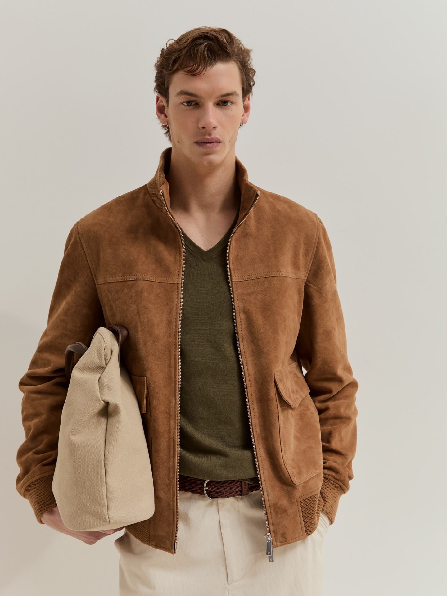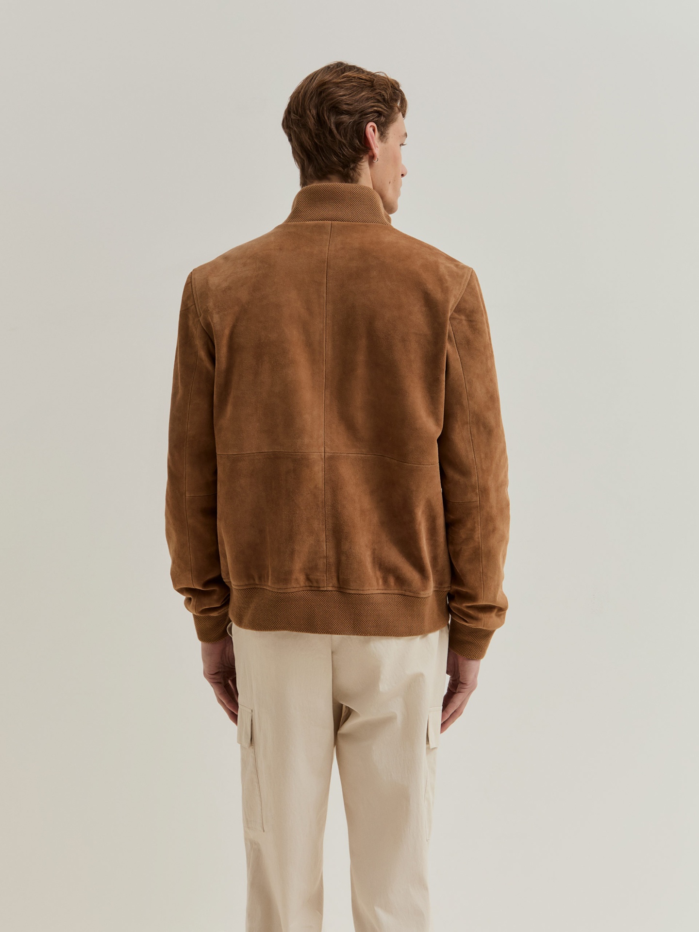 Blusão em camurça. Modelo com fecho de correr de duplo cursor para maior praticidade e estilo. A base e os punhos em malha conferem um melhor ajuste. Com dois bolsos. É a peça ideal para compor looks versáteis e práticos.