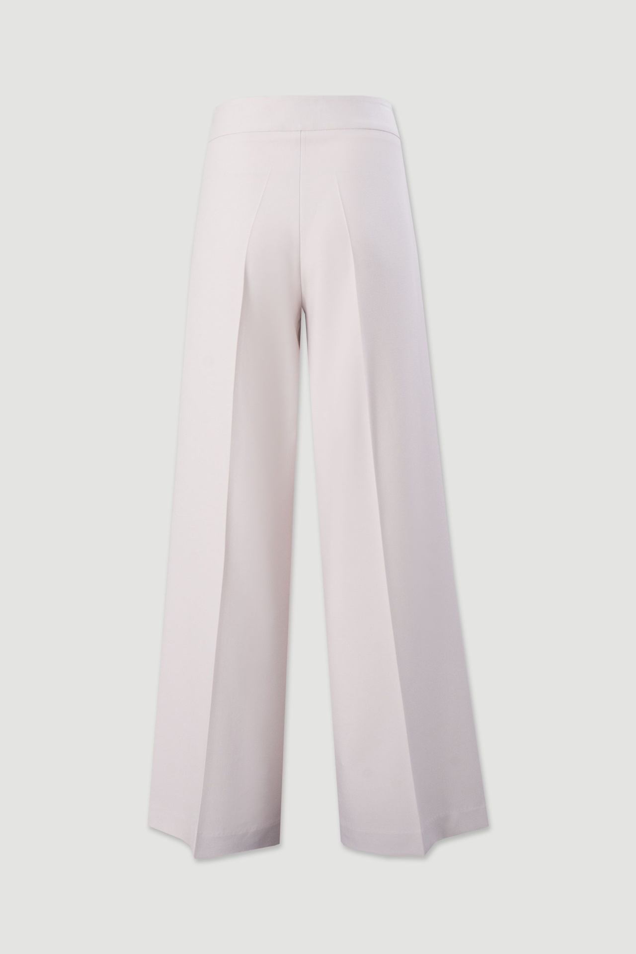 Calça de corte wide leg com cintura subida, que alonga a silhueta e confere um visual sofisticado. O detalhe de pregas na frente acrescenta estrutura, enquanto o fecho frontal com dois ganchos e botão interior é coberto por uma tira sobreposta para um acabamento elegante. Bolsos laterais completam a peça. Uma opção versátil e refinada para coordenados do dia a dia ou ocasiões mais formais.