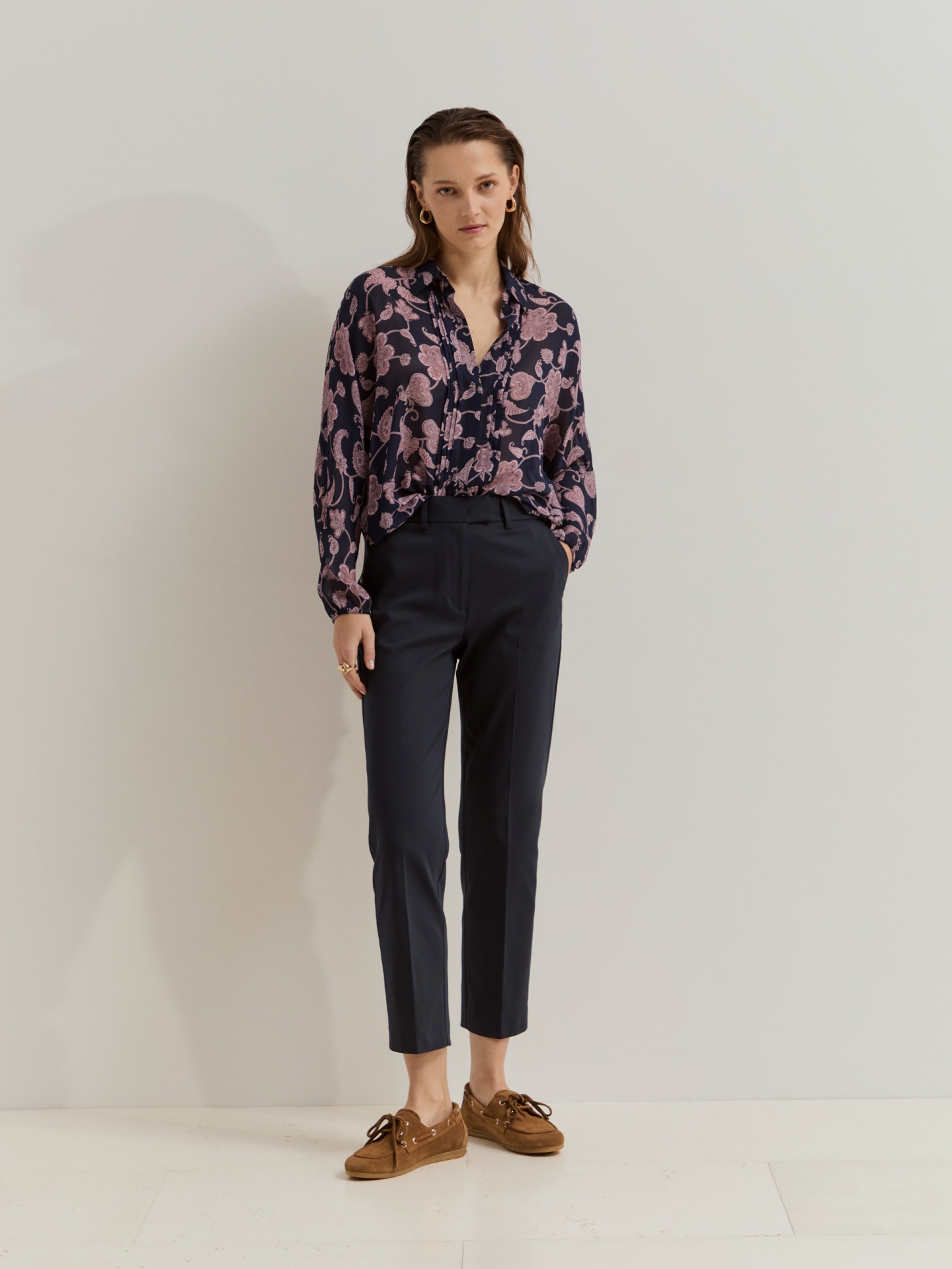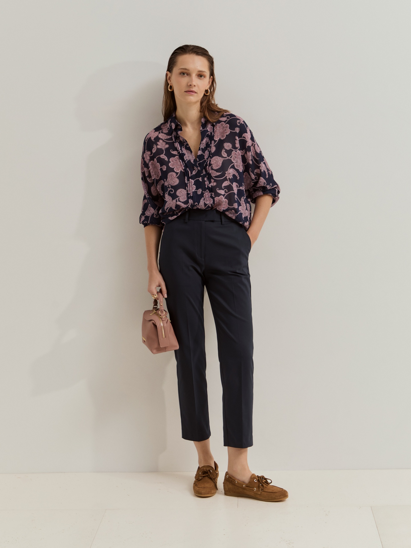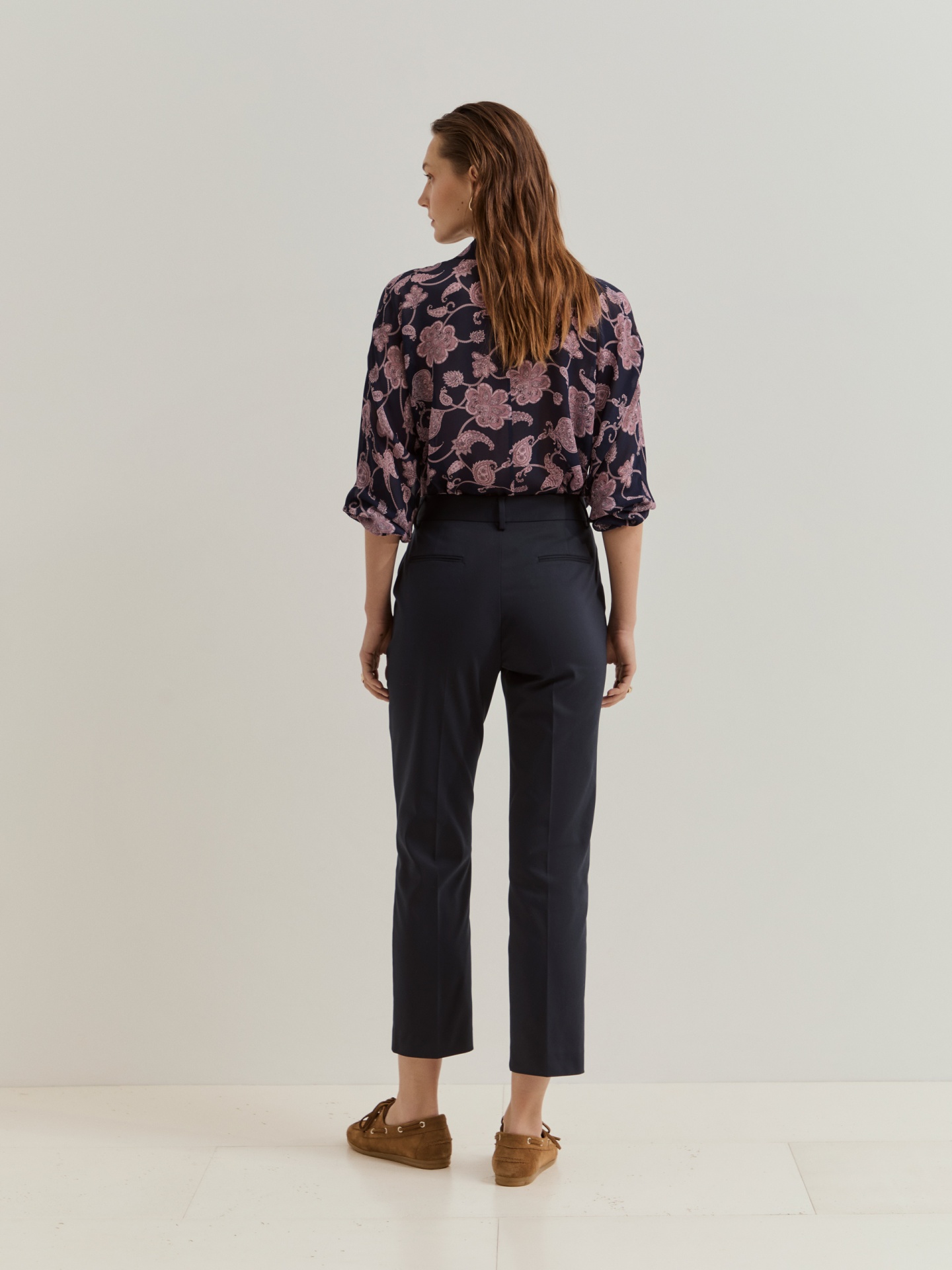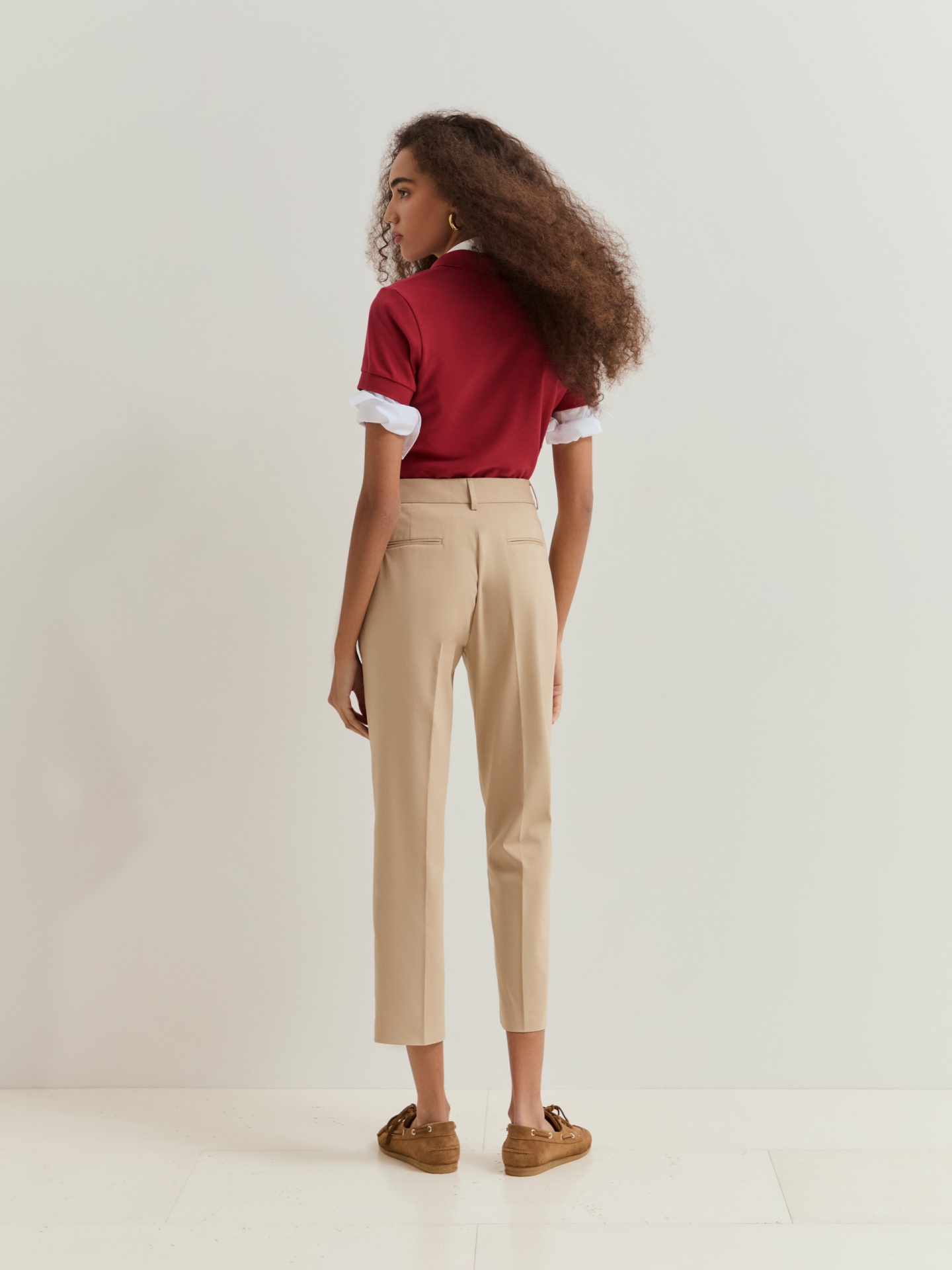 Clássicas e versáteis, estas calças chino combinam elegância e conforto em qualquer ocasião. Apresentam dois bolsos à frente e dois bolsos de vivo atrás, acrescentando um toque funcional ao design. Uma peça essencial no guarda-roupa feminino, ideal para completar diversos coordenados.