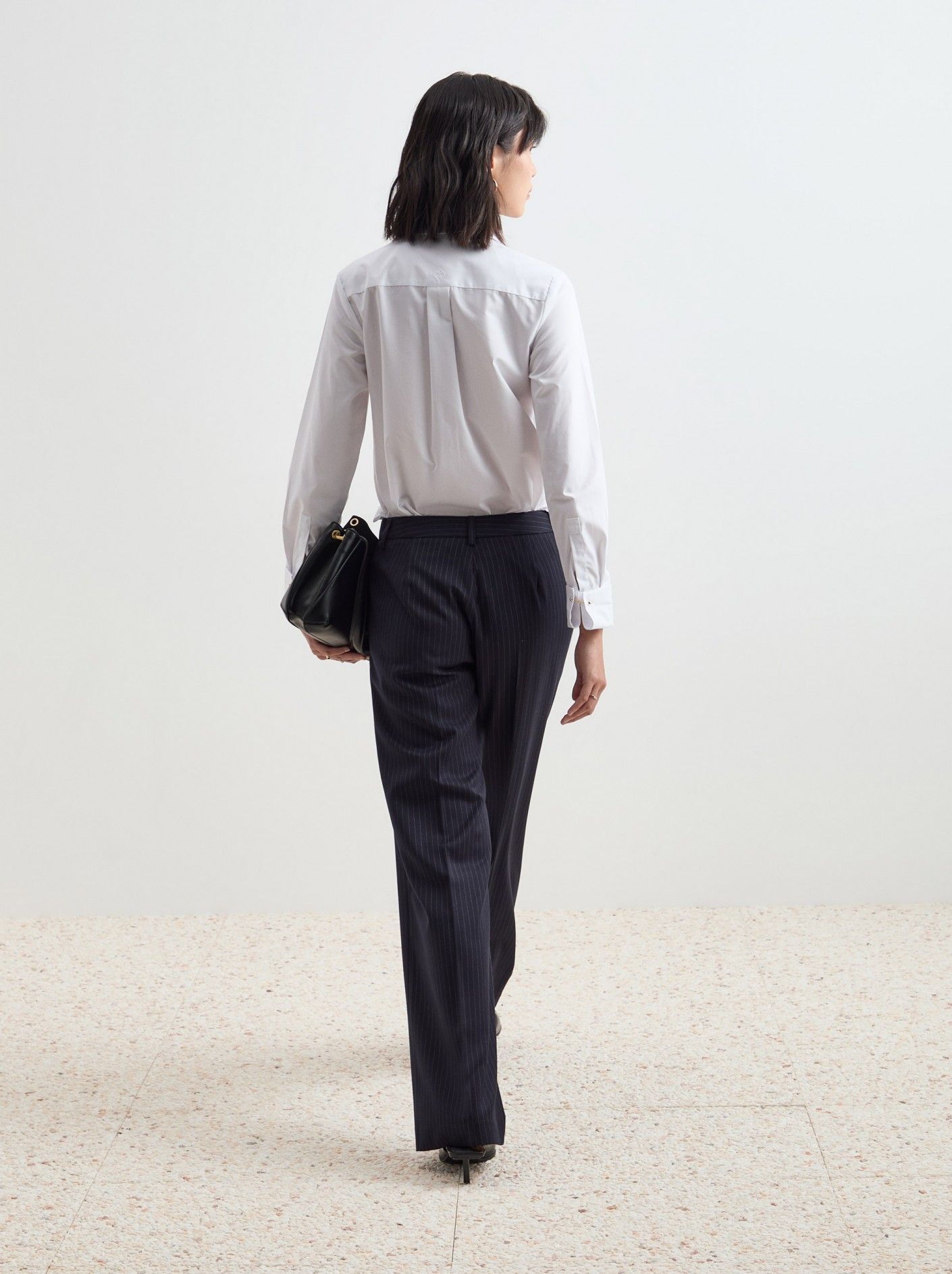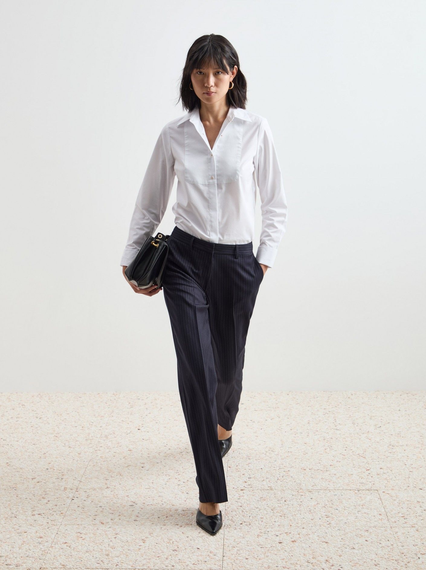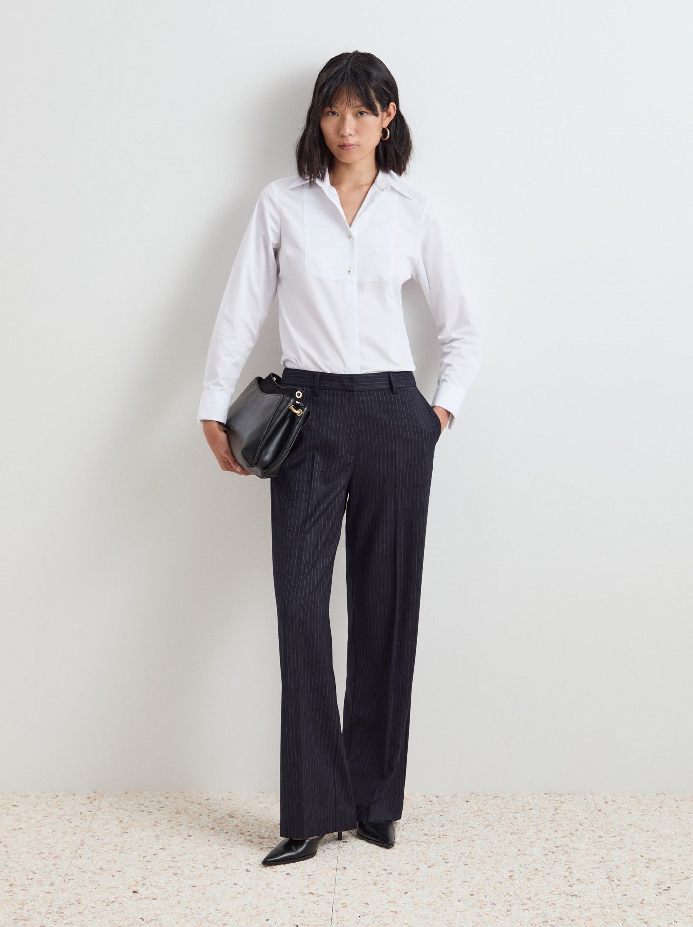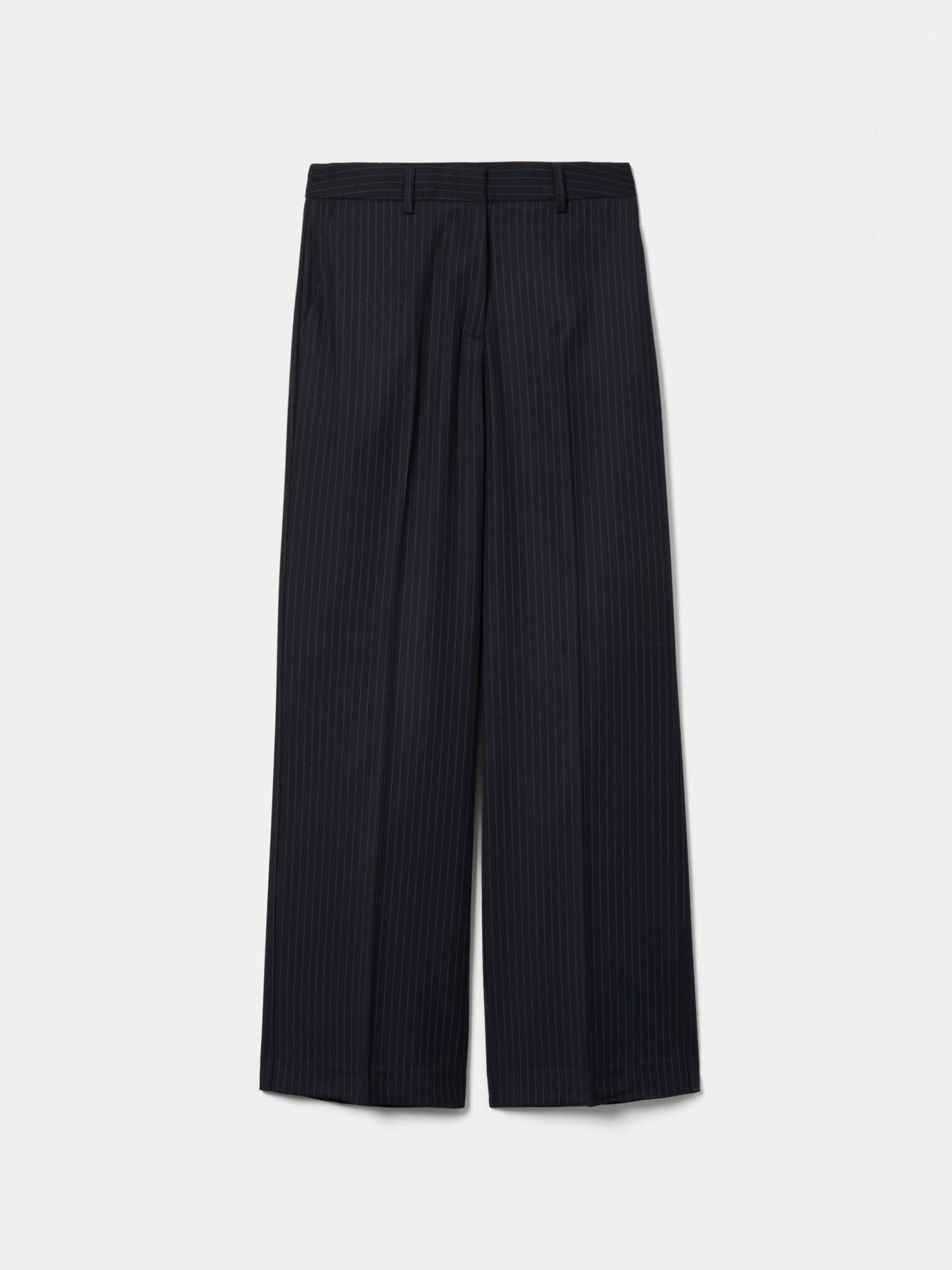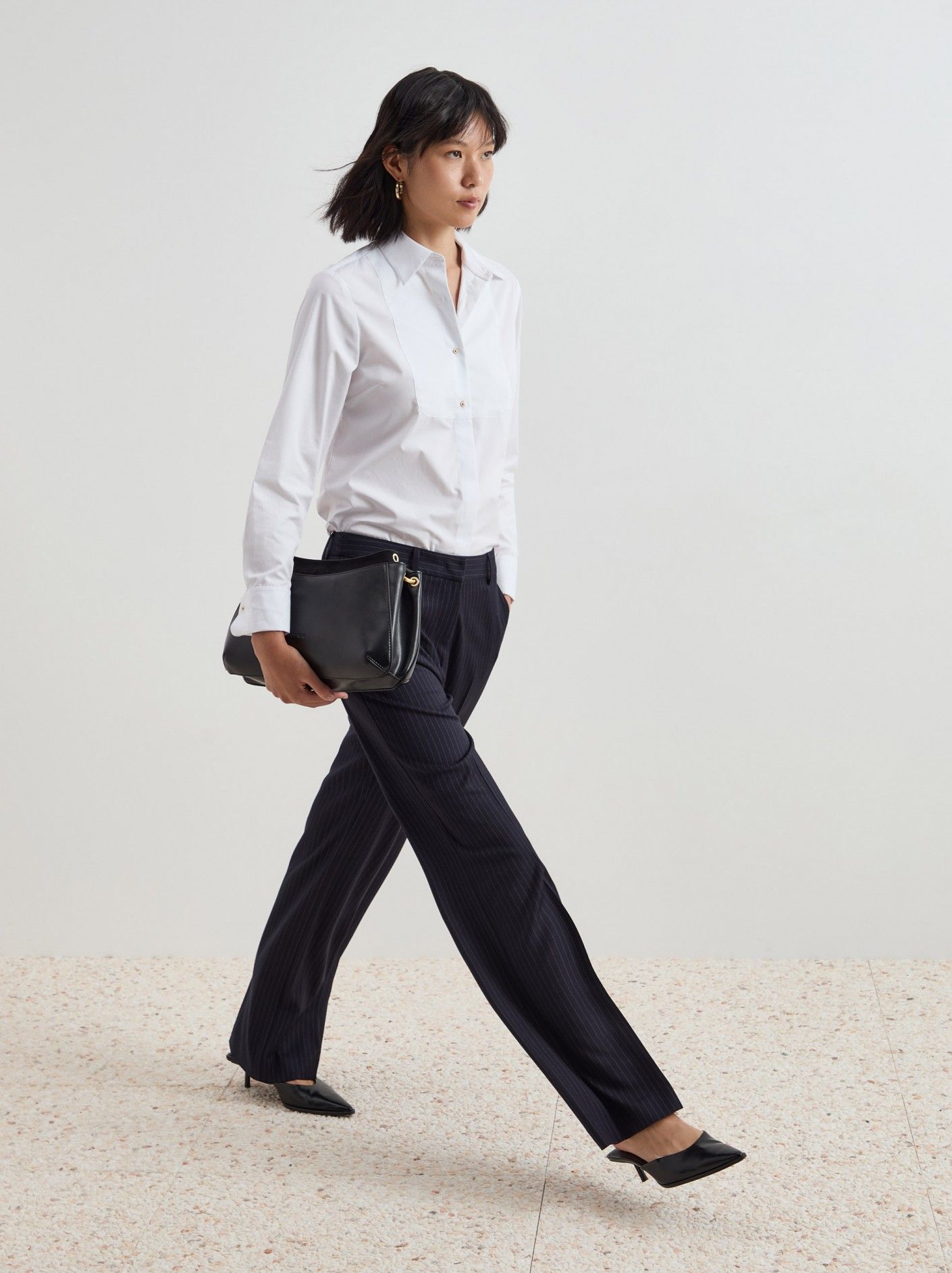 Calças clássicas às riscas em corte regular fit, ideais para quem valoriza conforto e elegância no dia a dia. O tecido combina resistência, toque suave e flexibilidade, garantindo um ajuste confortável que acompanha os movimentos. Perfeitas para um look sofisticado e versátil, que se adapta a várias ocasiões.