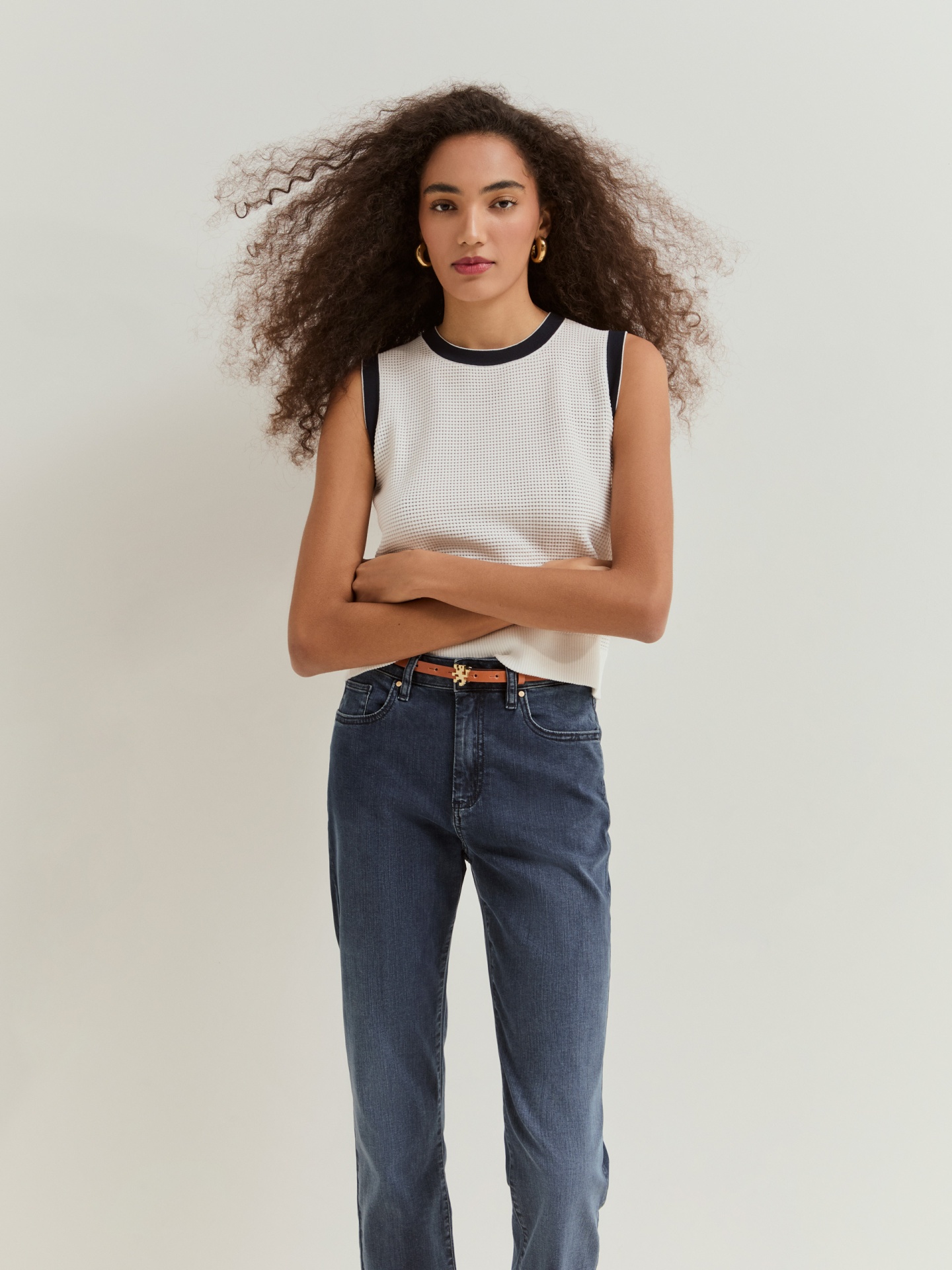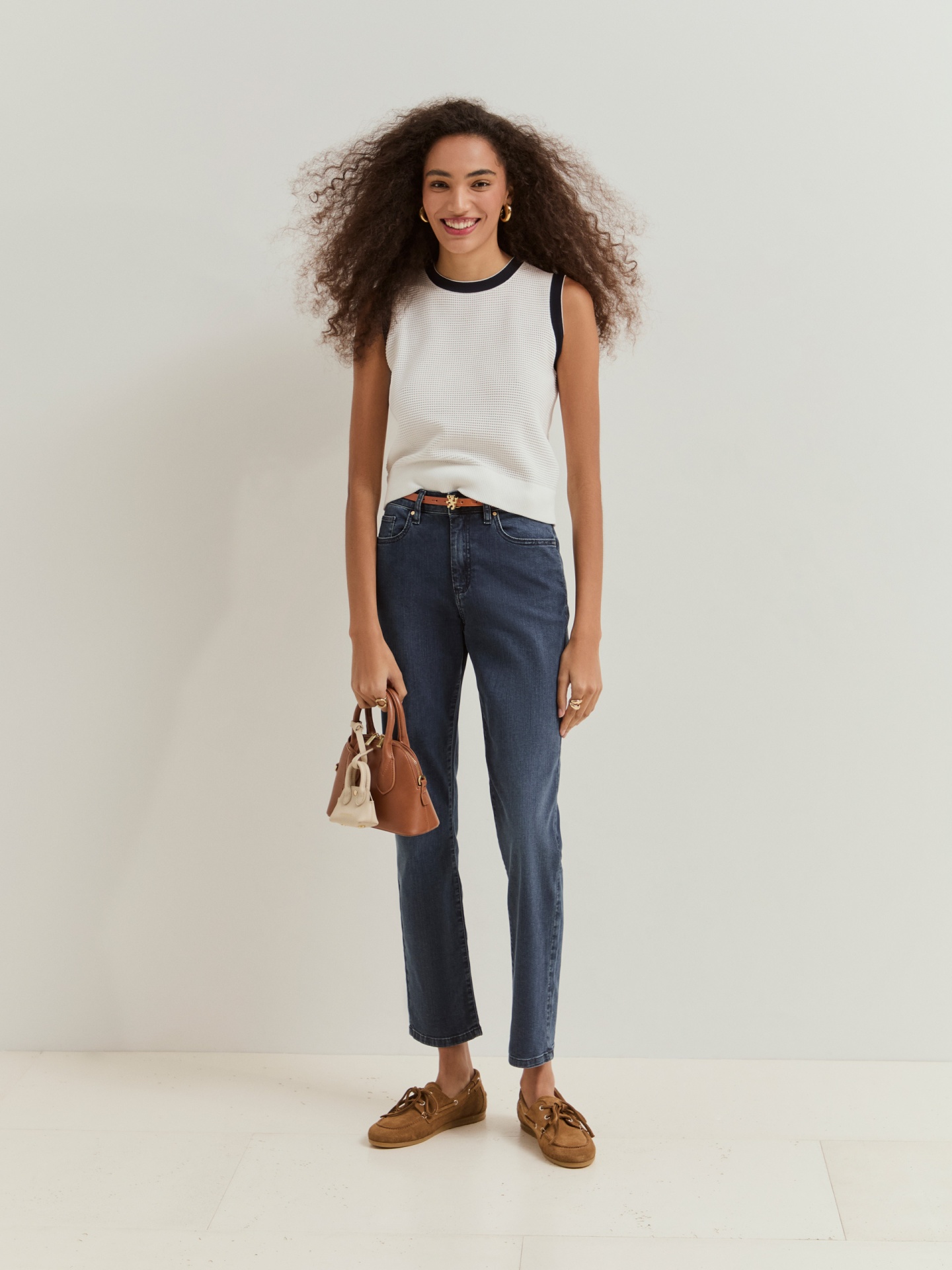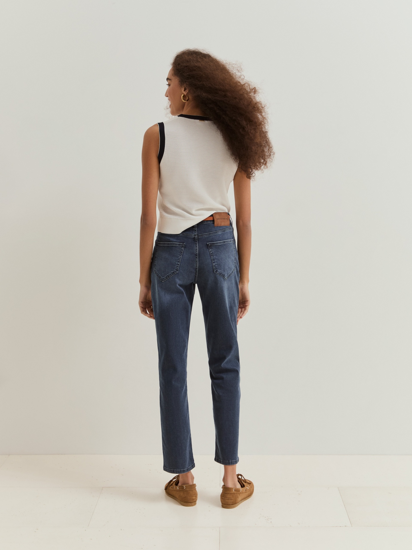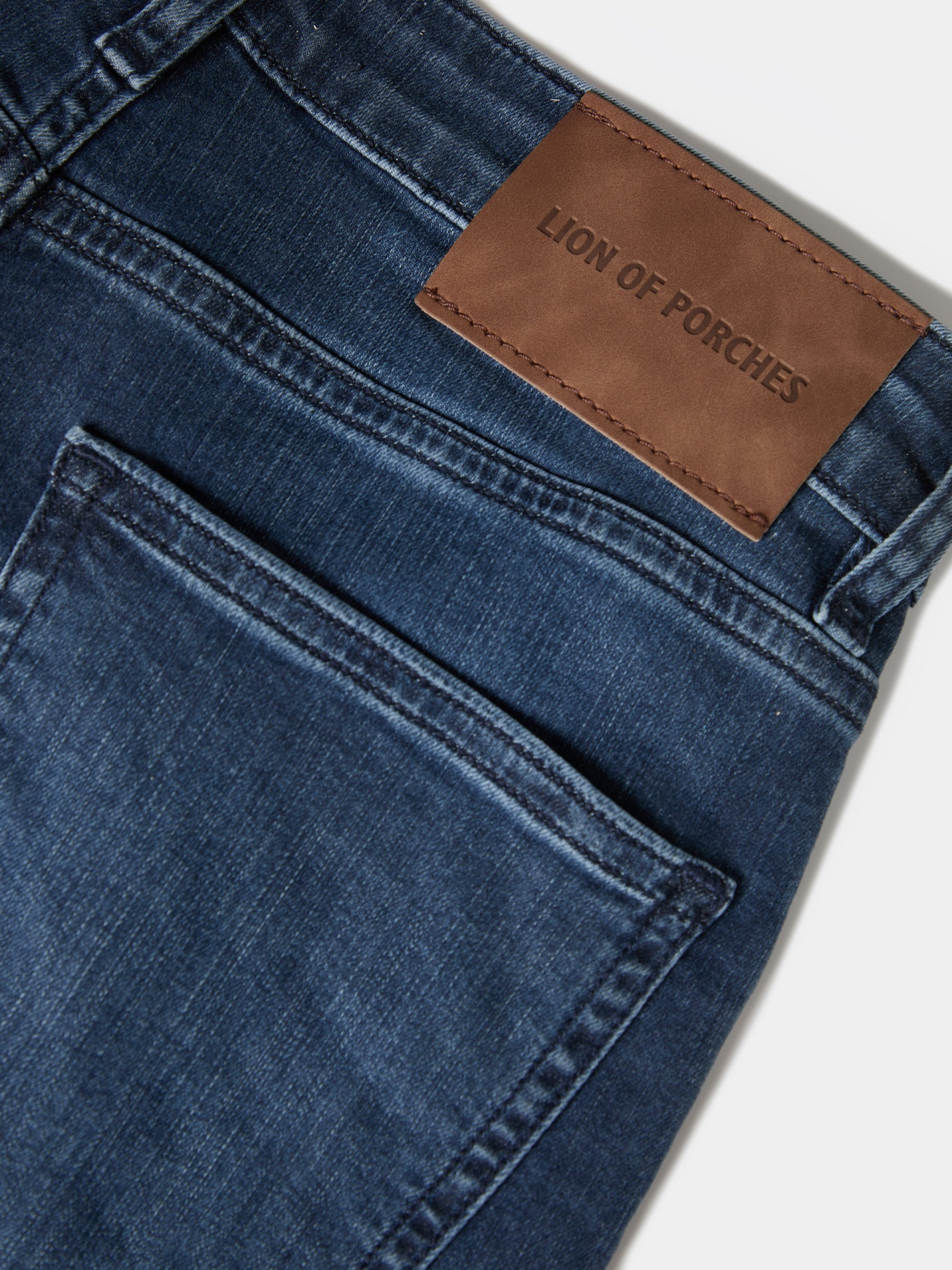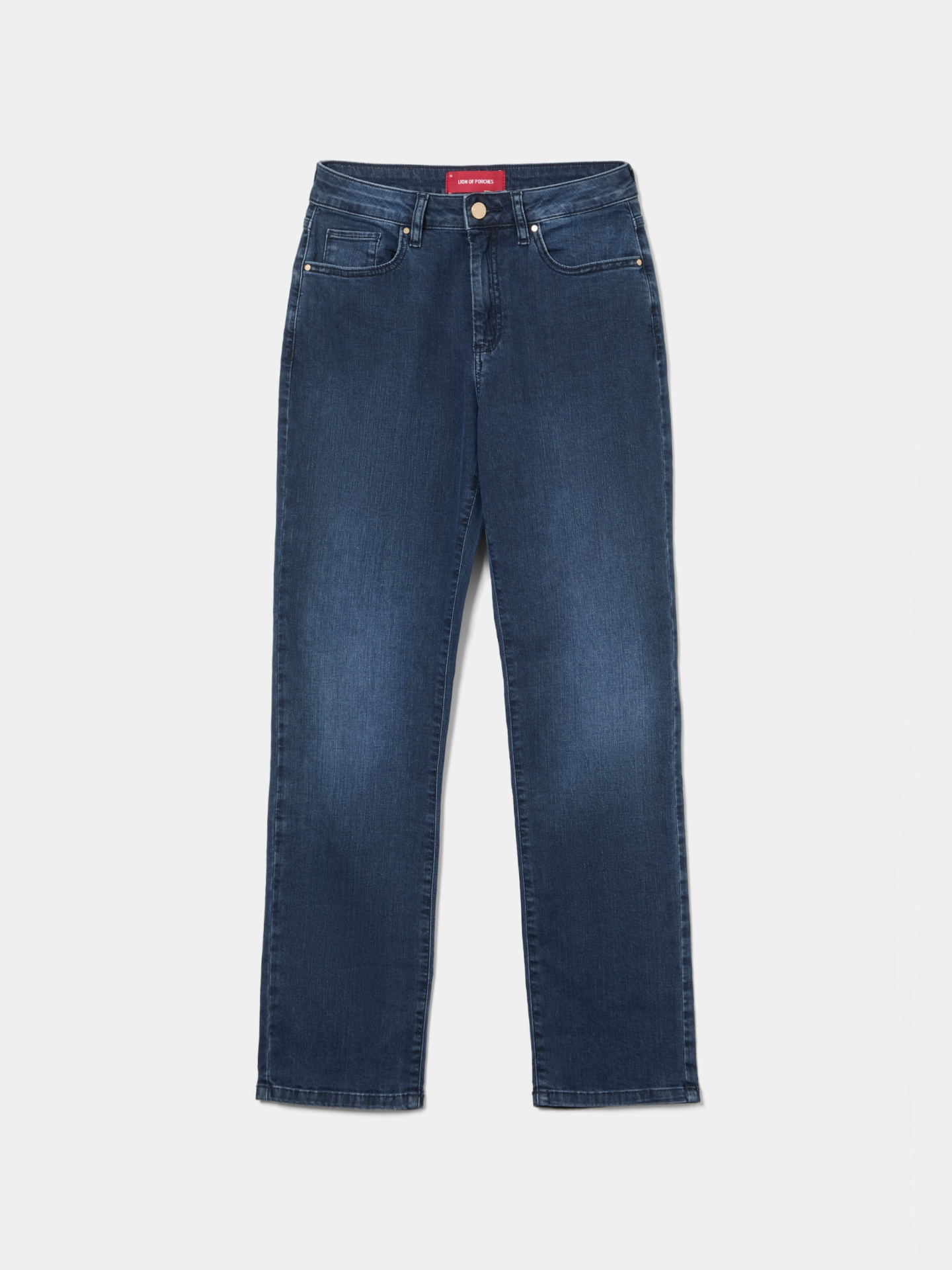 Calças jeans de corte Regular Fit, confeccionadas em algodão com um toque de elastano, garantindo conforto e liberdade de movimentos. Apresentam cinco bolsos clássicos, botões e rebites personalizados, tornando-as uma peça versátil e indispensável no guarda-roupa diário.