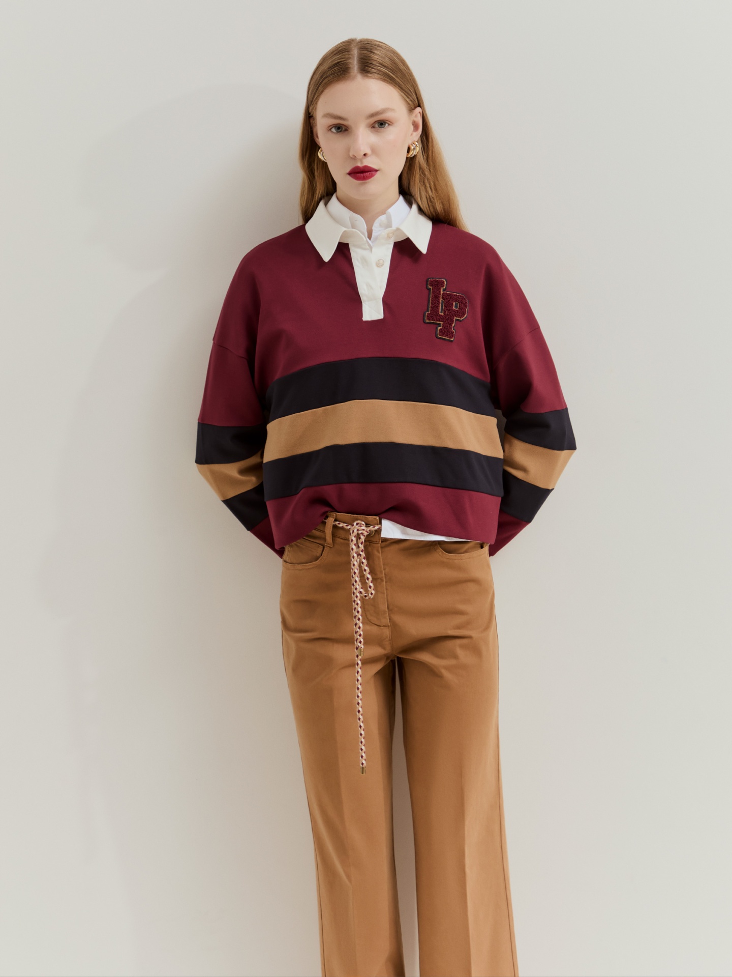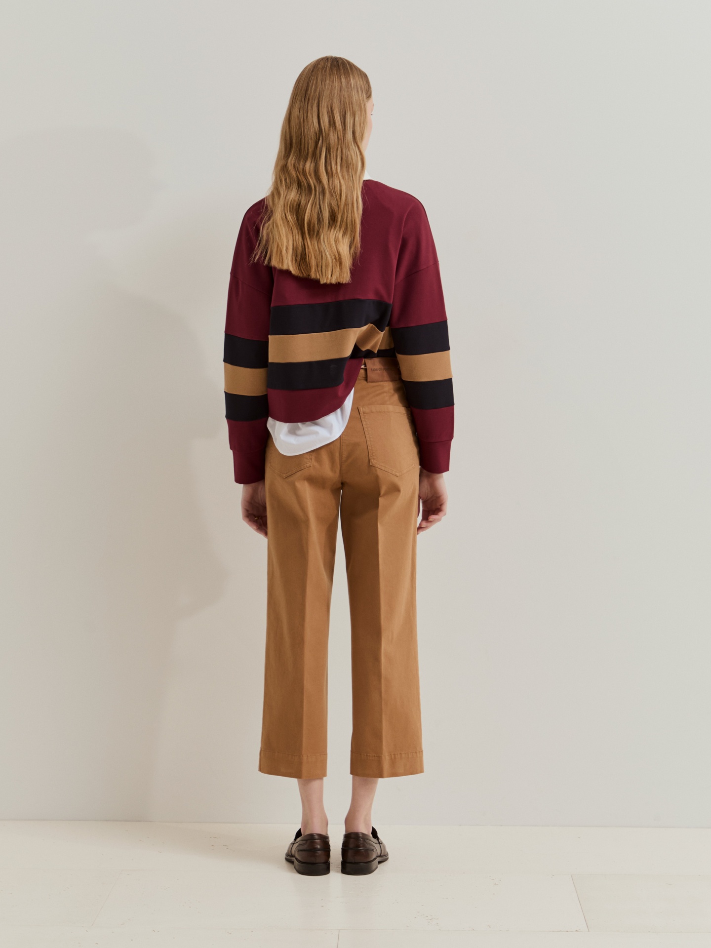 Com um corte moderno e descontraído, estas calças em corte wide leg unem conforto e estilo. O cordão tricolor adiciona um detalhe diferenciador, enquanto a cintura ajustável proporciona um fitting prático e versátil para o dia a dia.