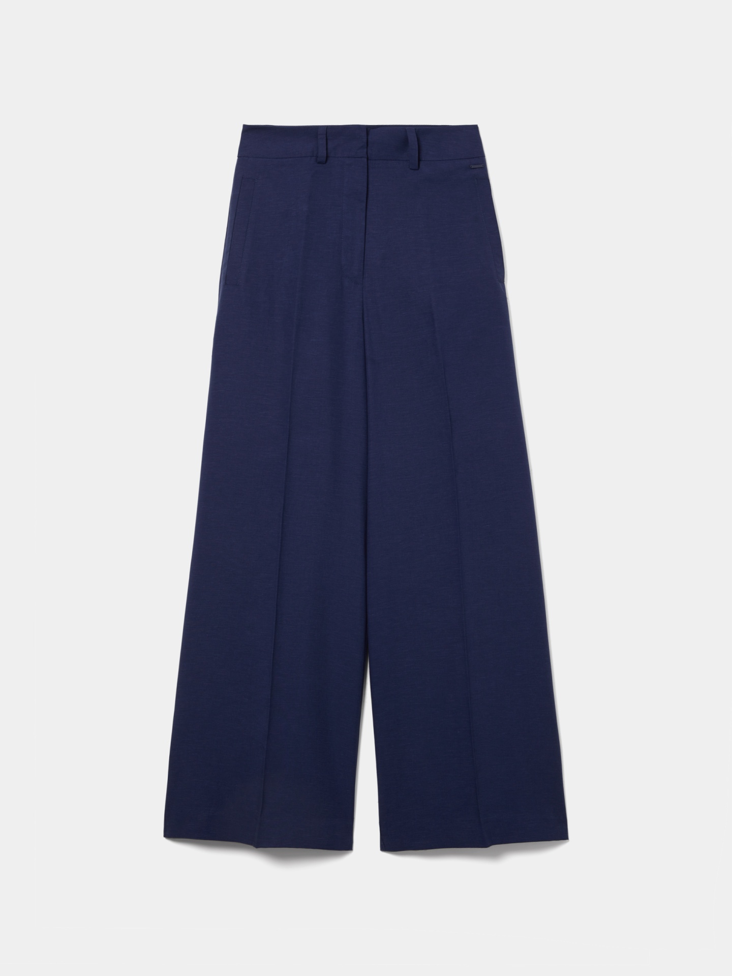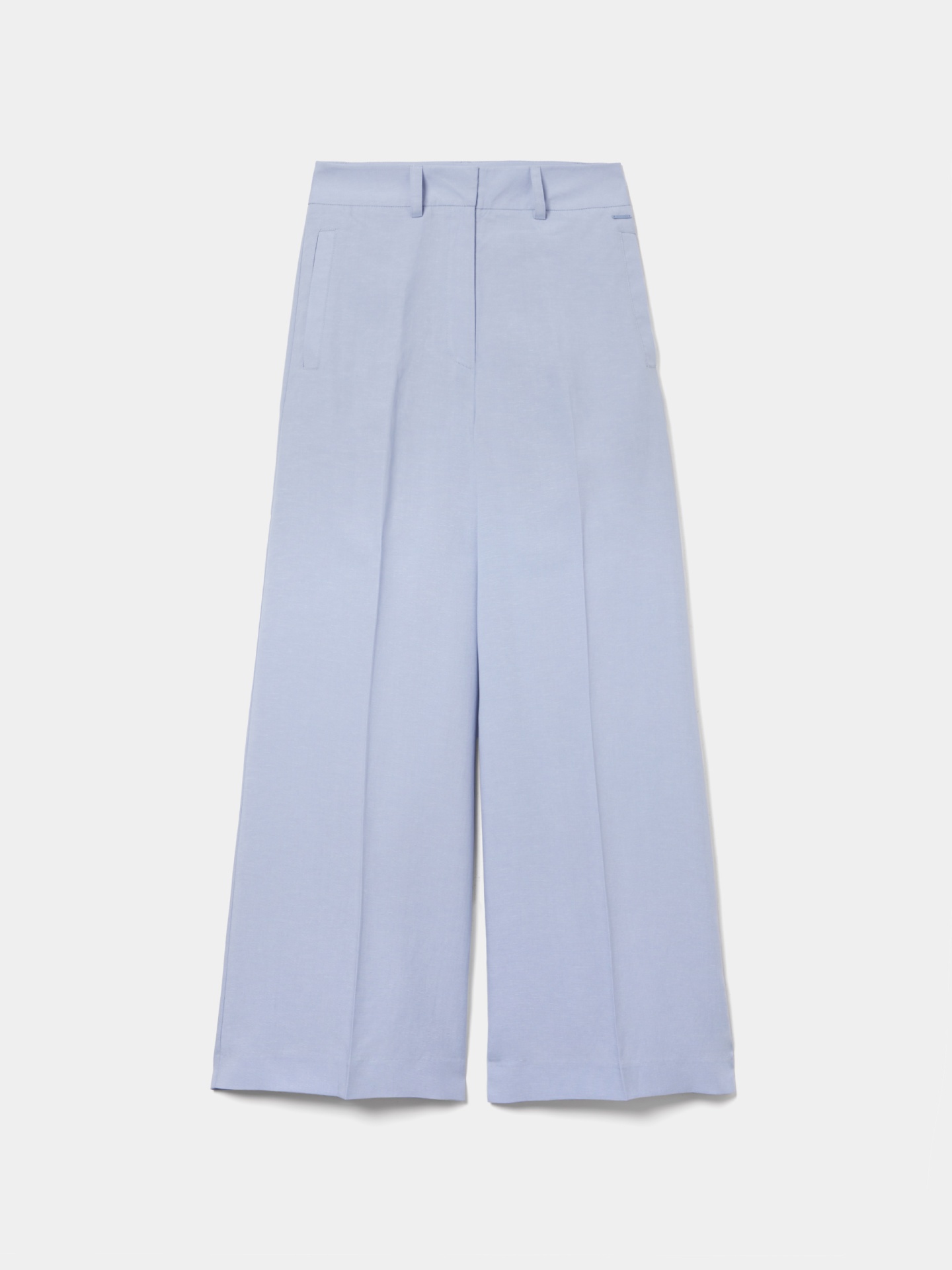 Calças wide leg confeccionadas em mistura de linho e lyocell, garantindo leveza, respirabilidade e um cair elegante. Apresentam bolsos de vista na lateral e pregas, conferindo um toque clássico ao design. Uma opção perfeita para conjuntos sofisticados de primavera-verão.