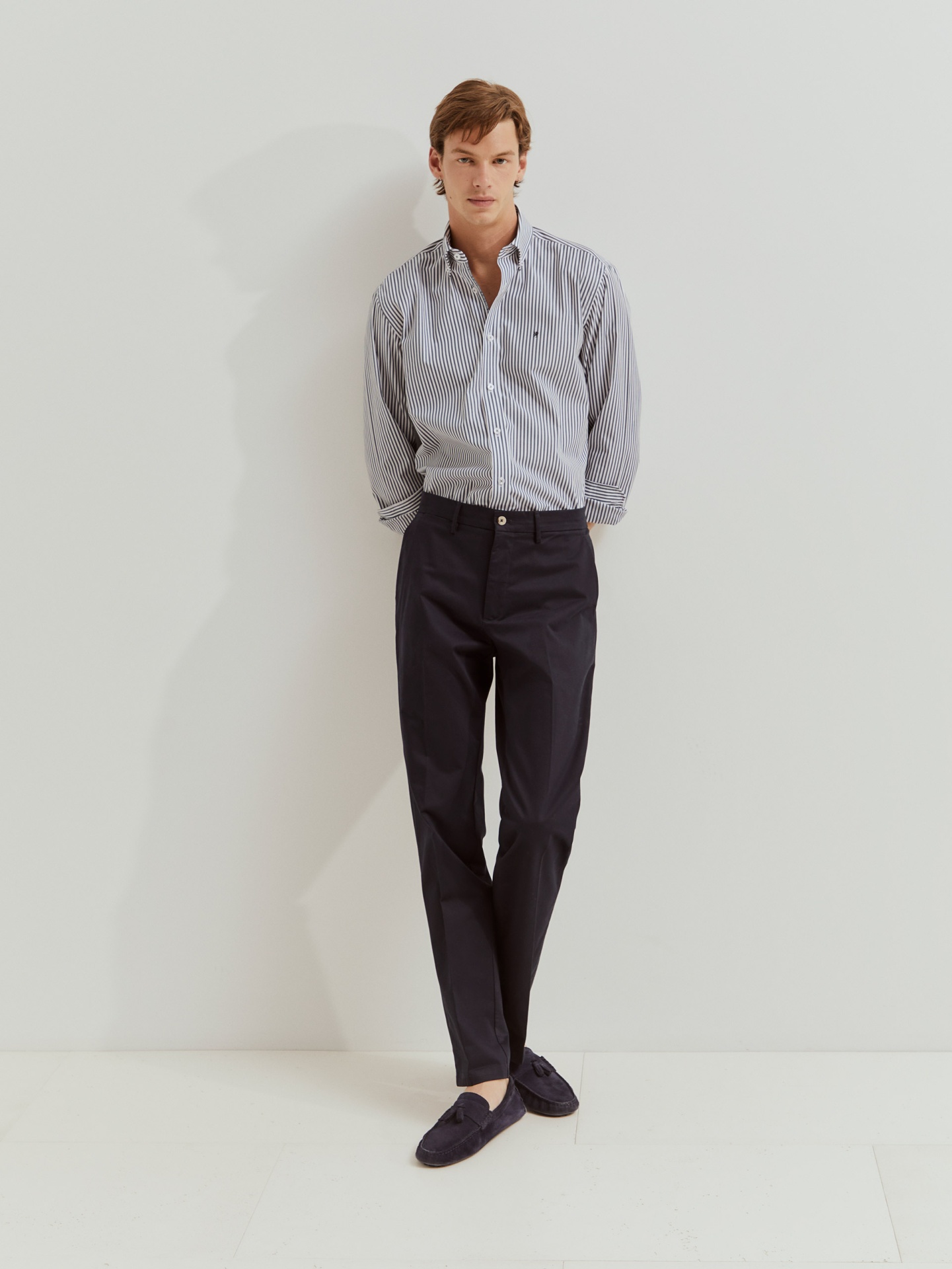 Indispensável no guarda-roupa masculino, esta camisa tem corte regular fit e colarinho com dois botões. Com padrão de riscas verticais. É confecionada, na totalidade, em algodão, que confere maior conforto e suavidade. Está disponível em várias cores e finaliza com pequeno leão da marca bordado no peito.