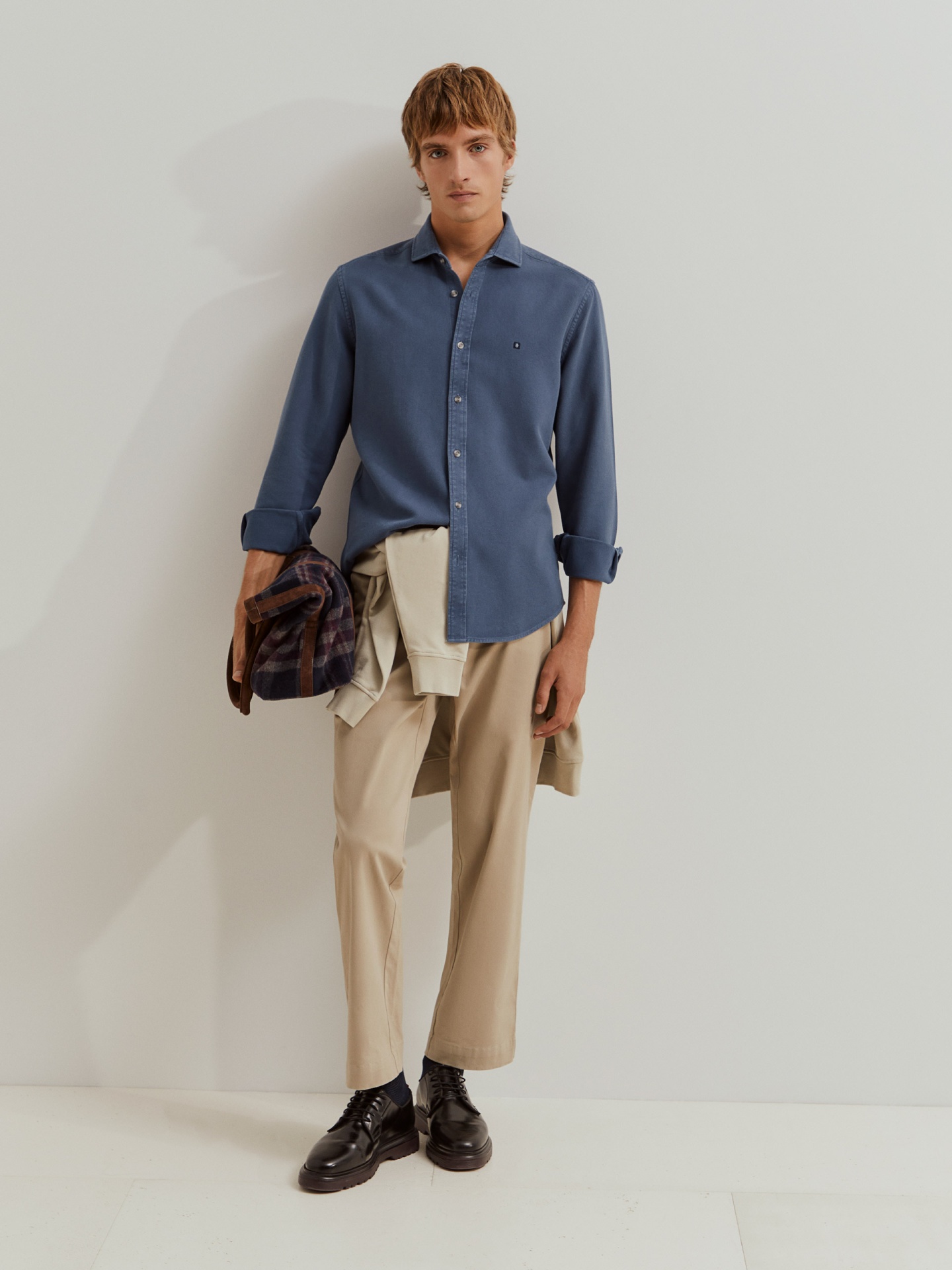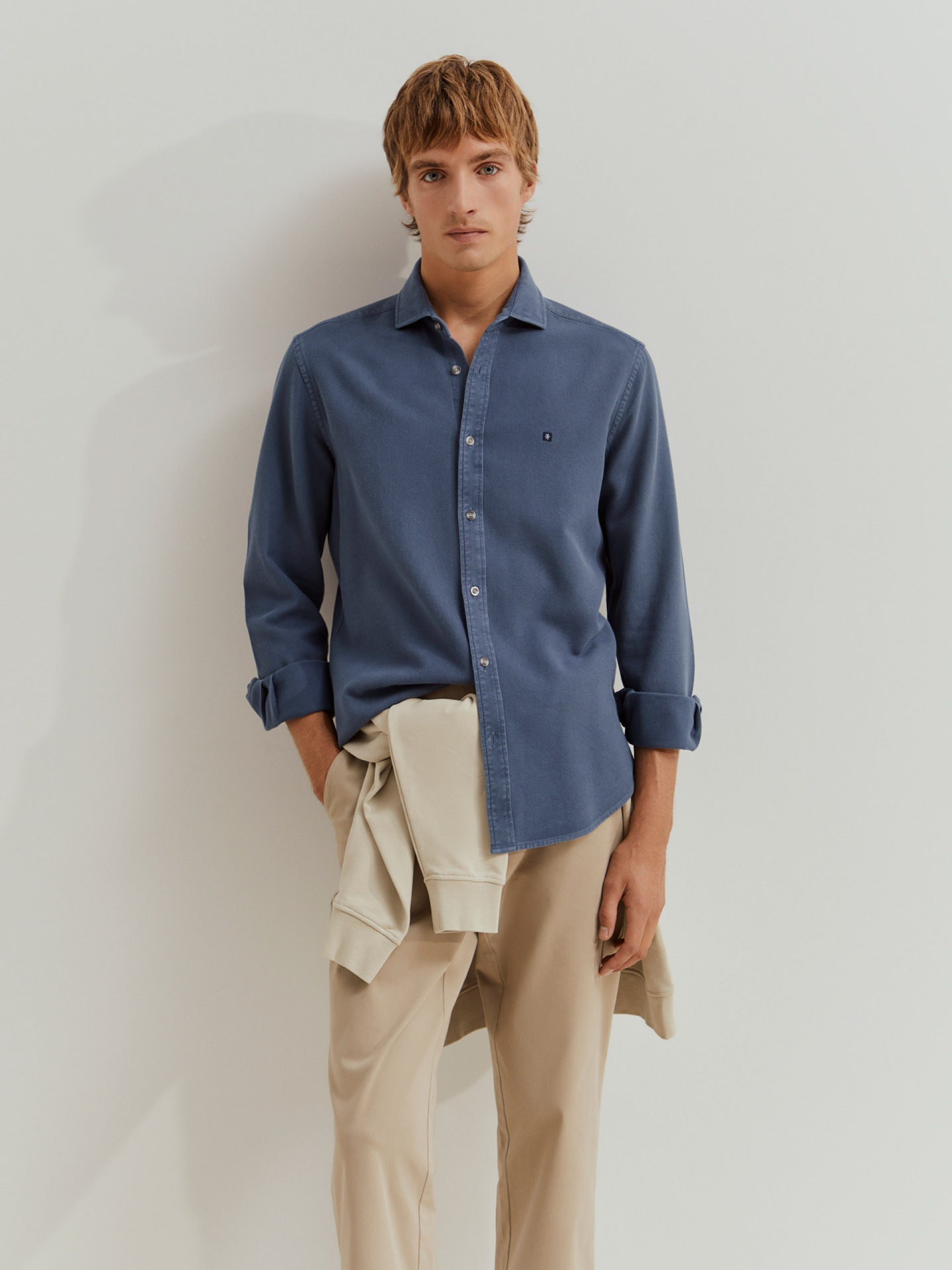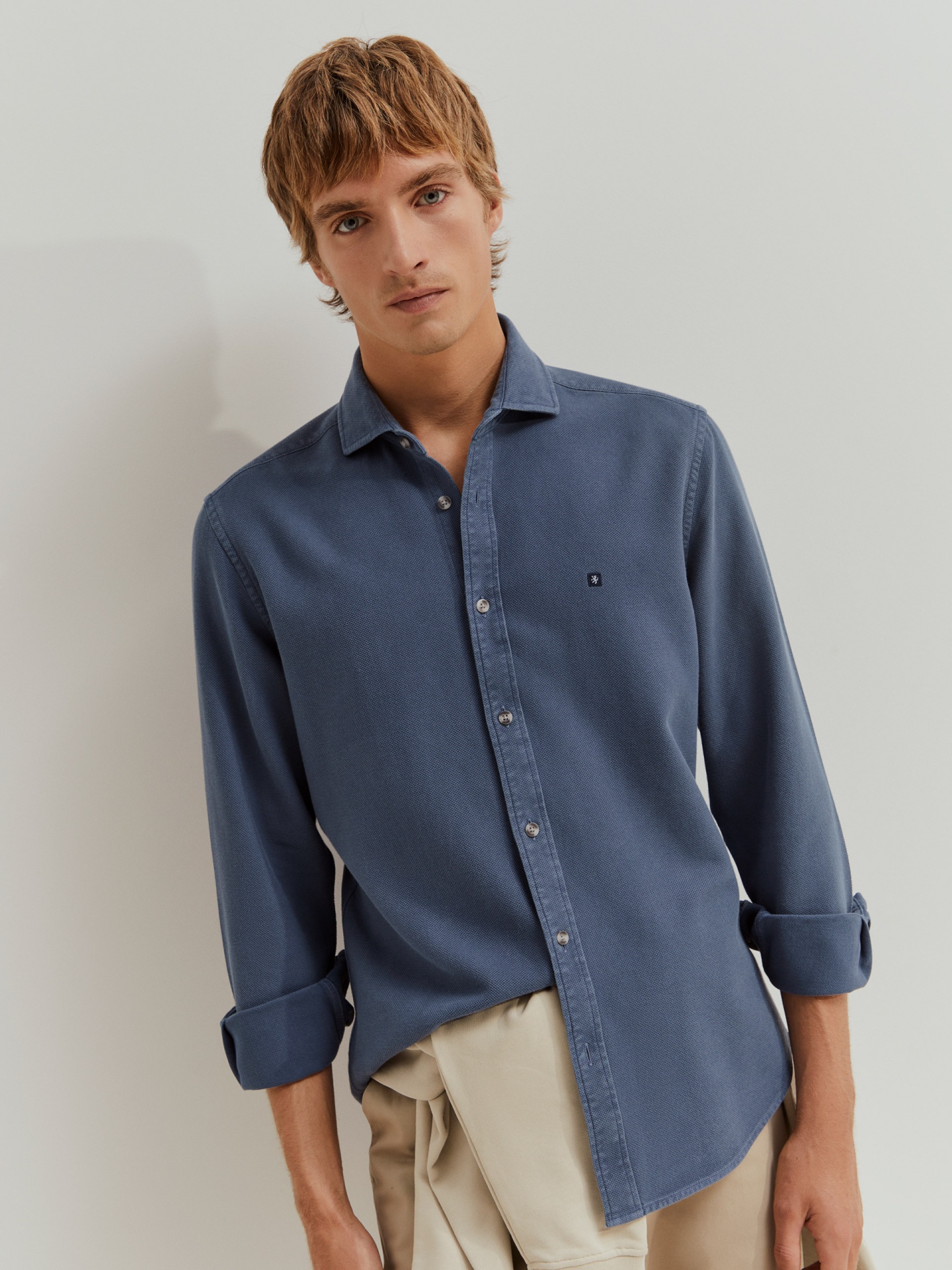 Camisa de manga comprida com corte slim fit e tecido com microtextura. Com colarinho 'cutaway', é confecionada, na totalidade, em algodão, que confere maior conforto e suavidade. Disponível em várias cores, finaliza com pequeno leão da marca bordado no peito.