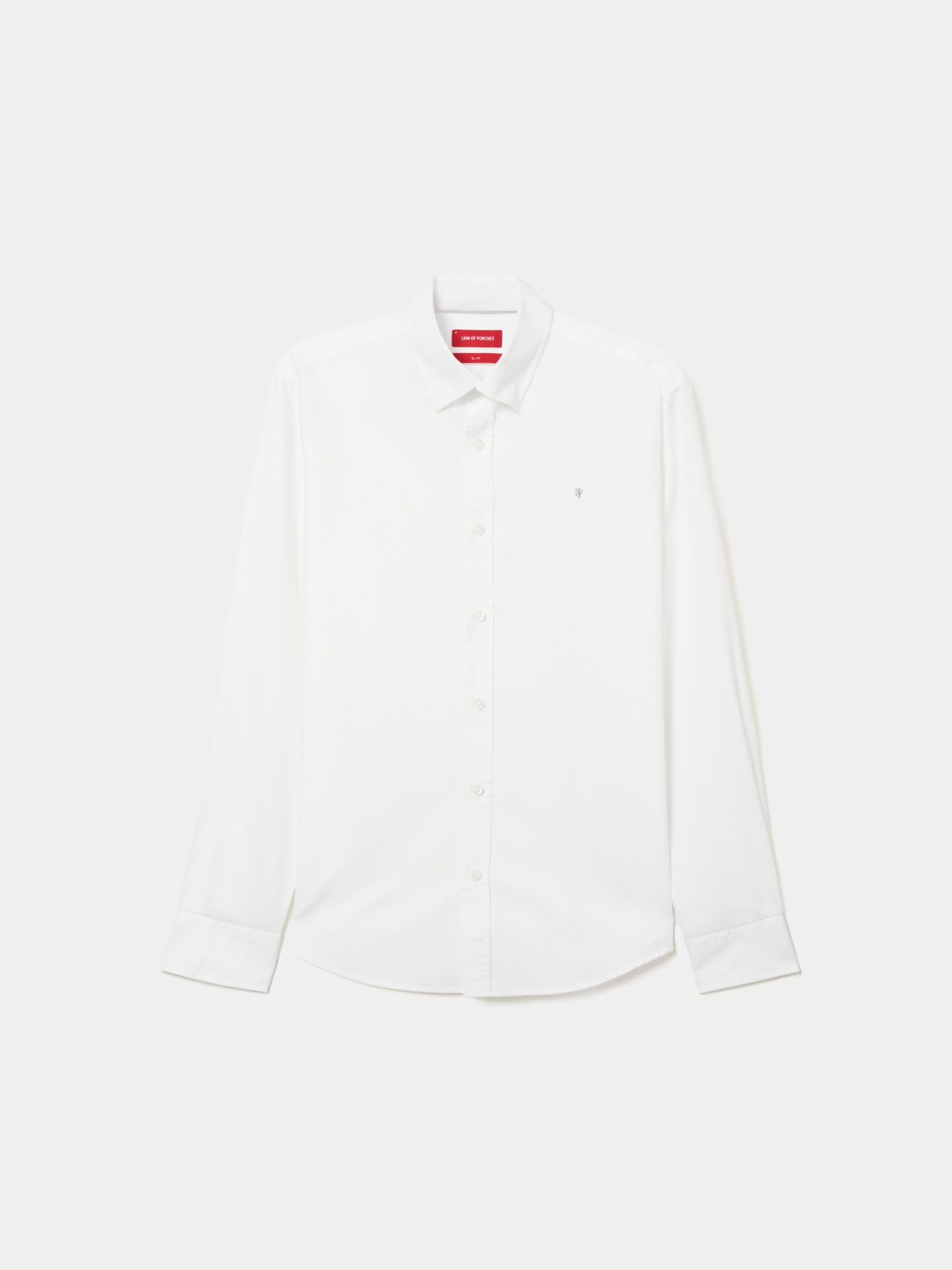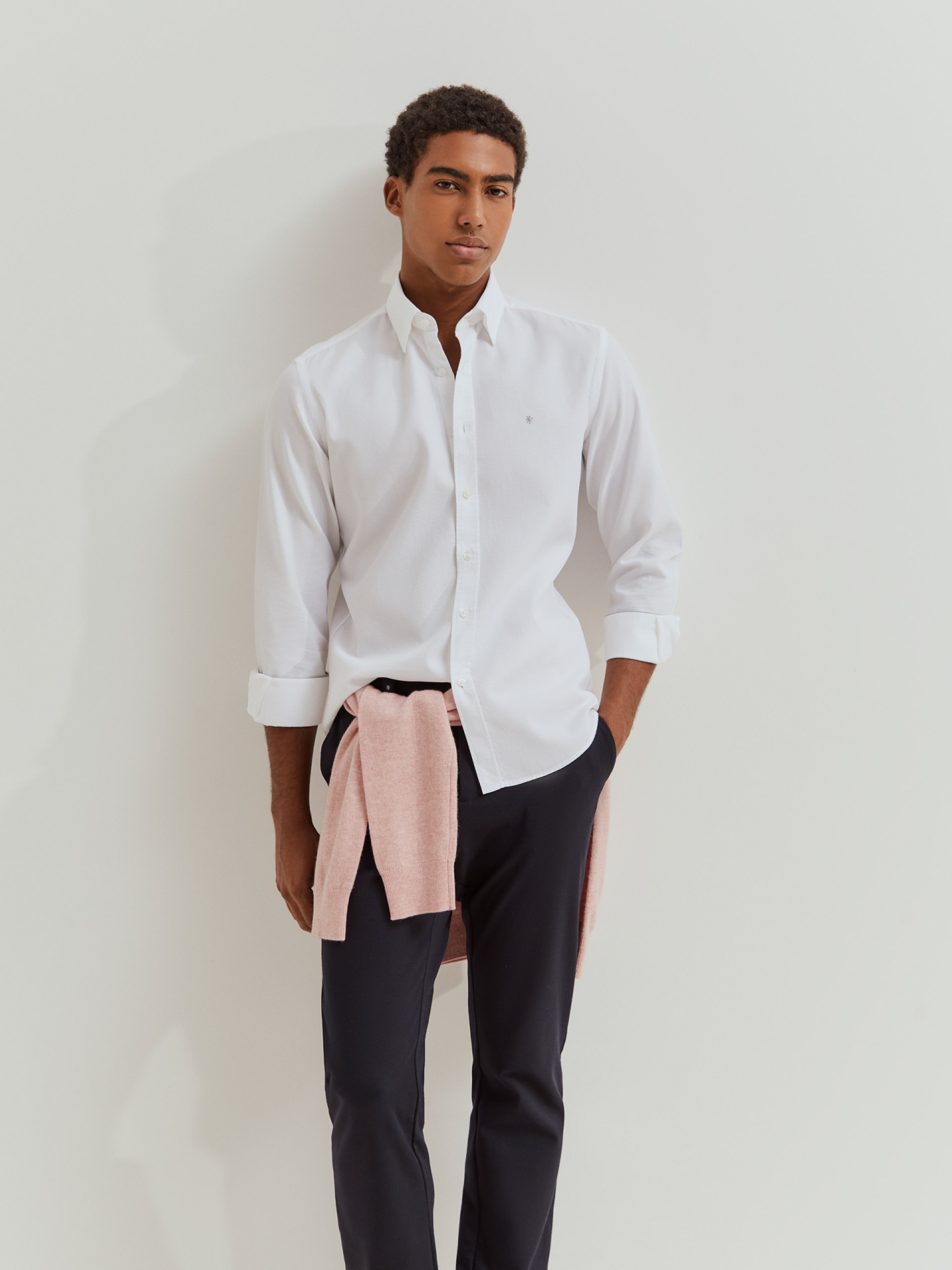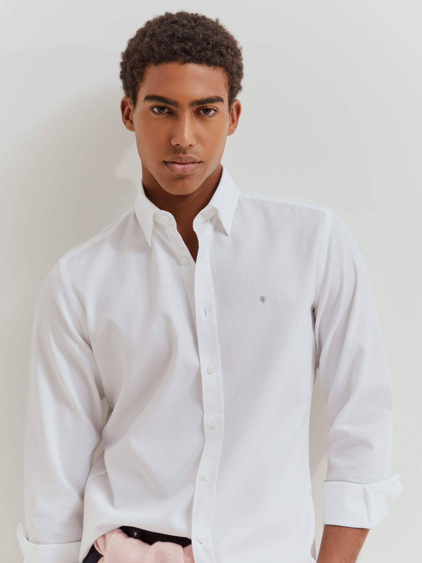 Camisa de manga comprida com corte slim fit e colarinho com dois botões ocultos. É confecionada, na totalidade, em algodão para maior conforto e suavidade. Finaliza com leão da marca em contraste no peito.