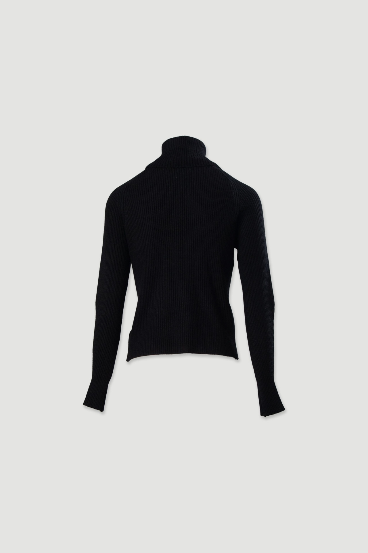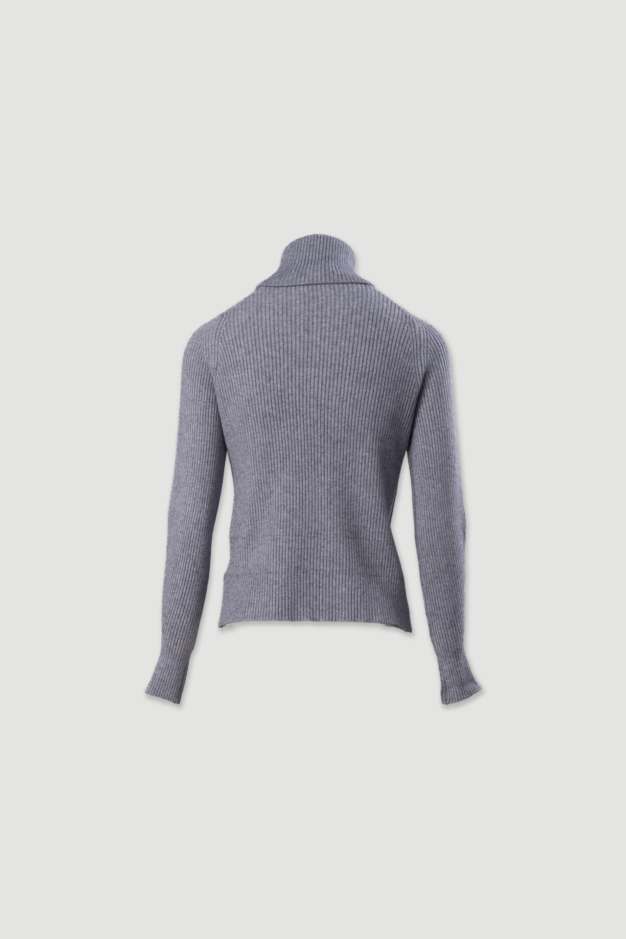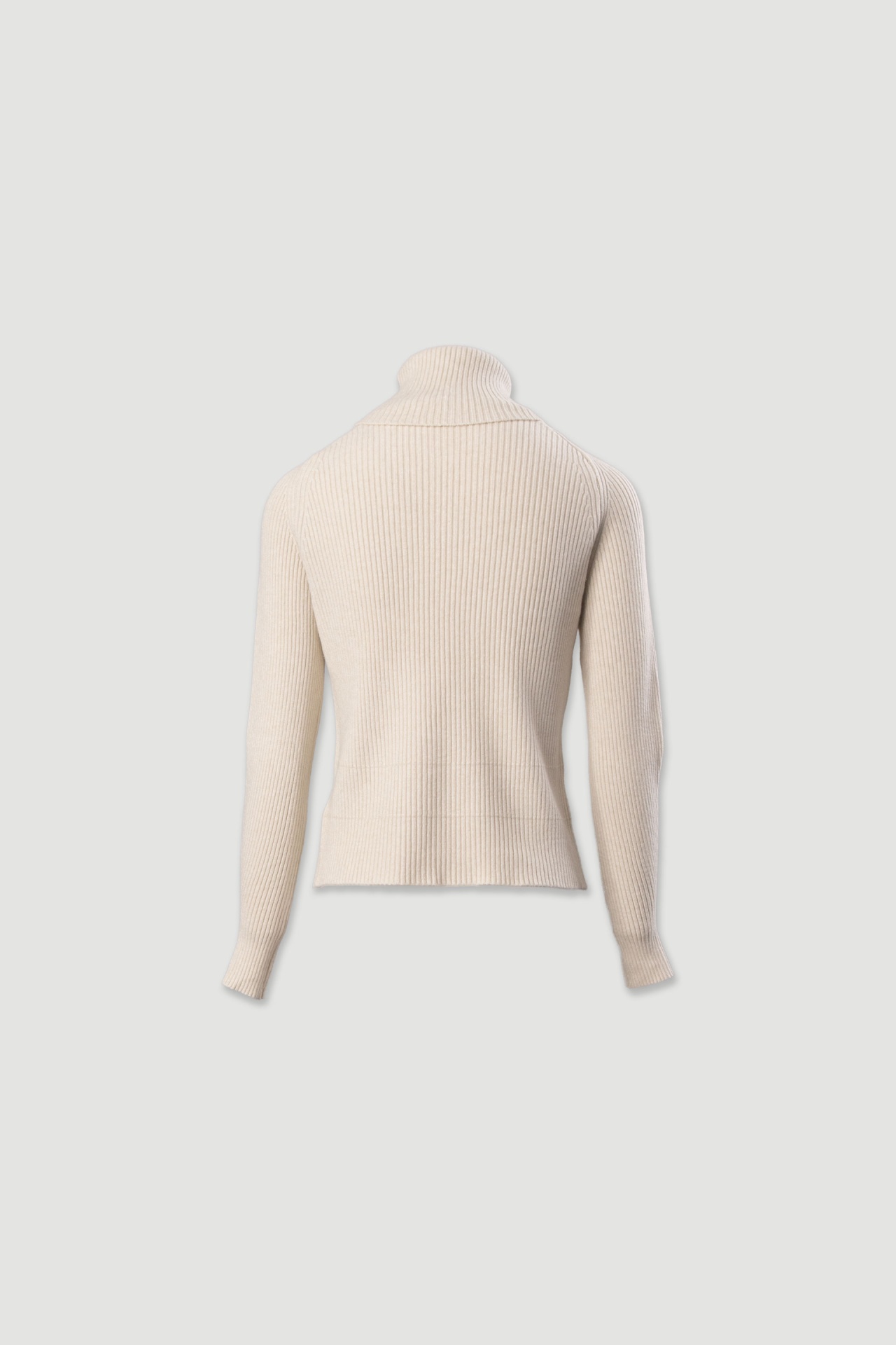 Camisola de malha canelada com gola alta, perfeita para criar looks quentes e sofisticados nos dias frios. O design apresenta corte direito e mangas compridas, assegurando conforto e um ajuste moderno ao corpo. A textura canelada acrescenta profundidade e elegância ao visual, tornando esta peça um essencial versátil, fácil de combinar com saias, jeans ou calças de alfaiataria.