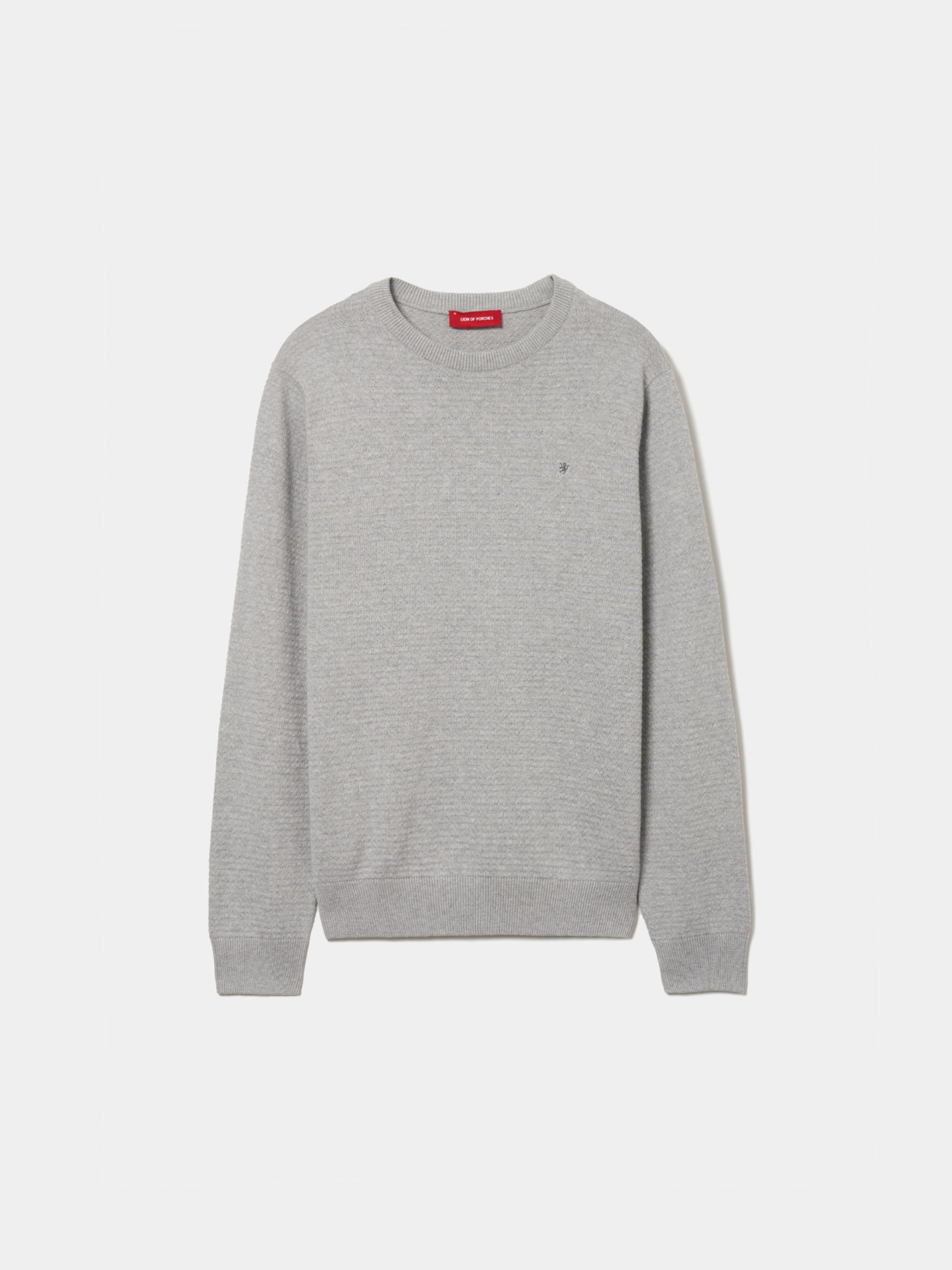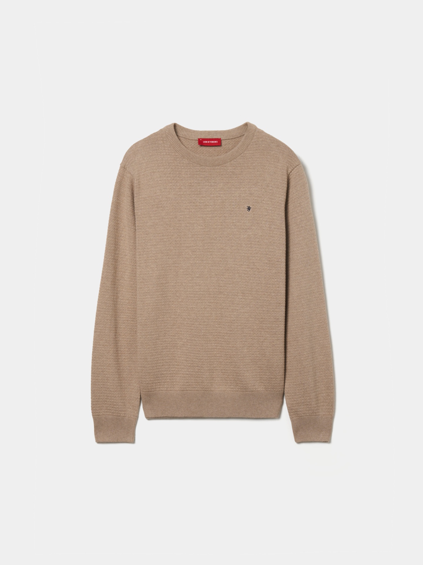 Adicione uma camada extra ao seu look com esta camisola de malha texturizada, de manga comprida, e decote redondo. Com pequeno leão da marca em contraste no peito e as extremidades caneladas. É confecionada, na totalidade, em algodão para maior conforto e suavidade.