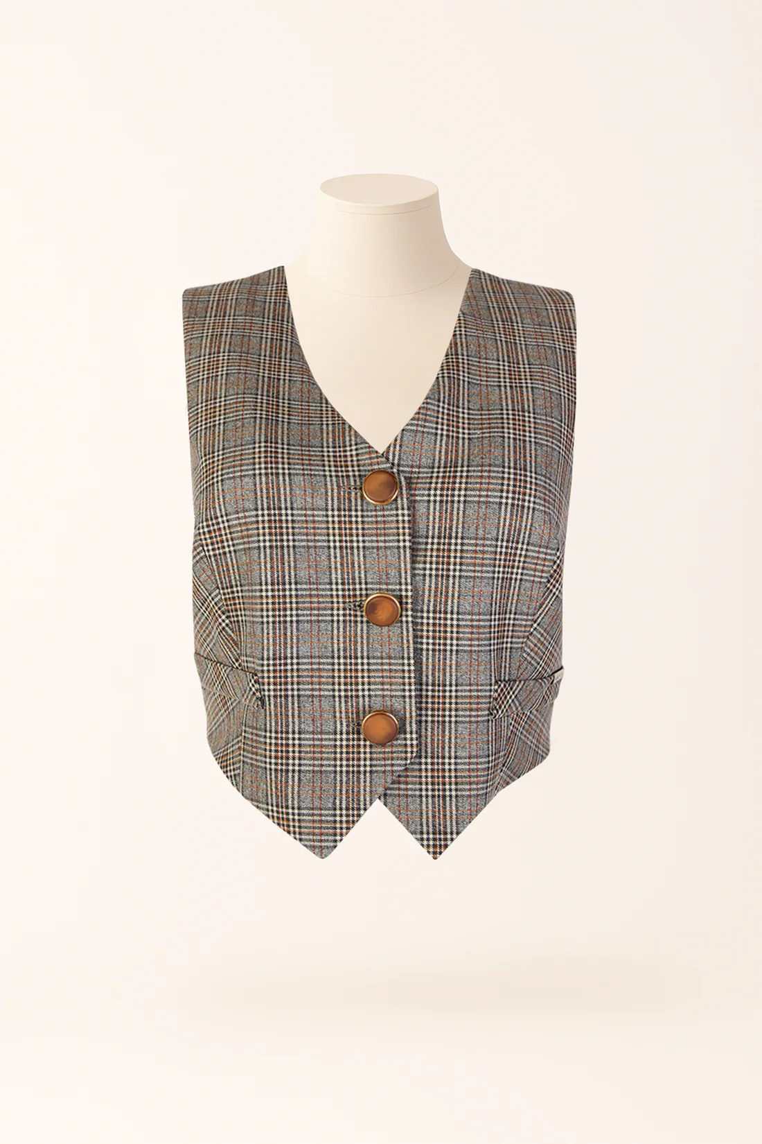 Colete em padrão Príncipe de Gales com botões Sahoco