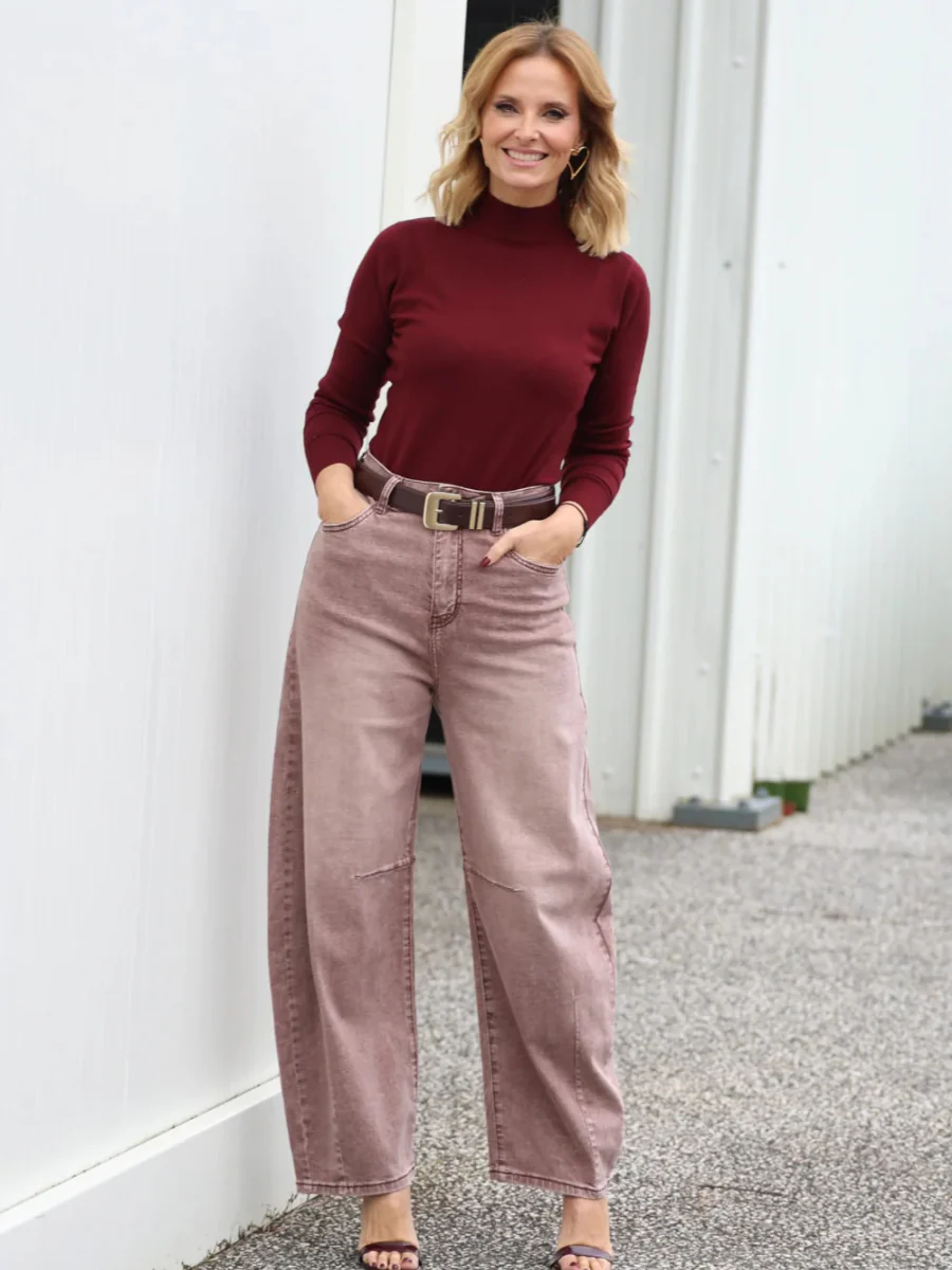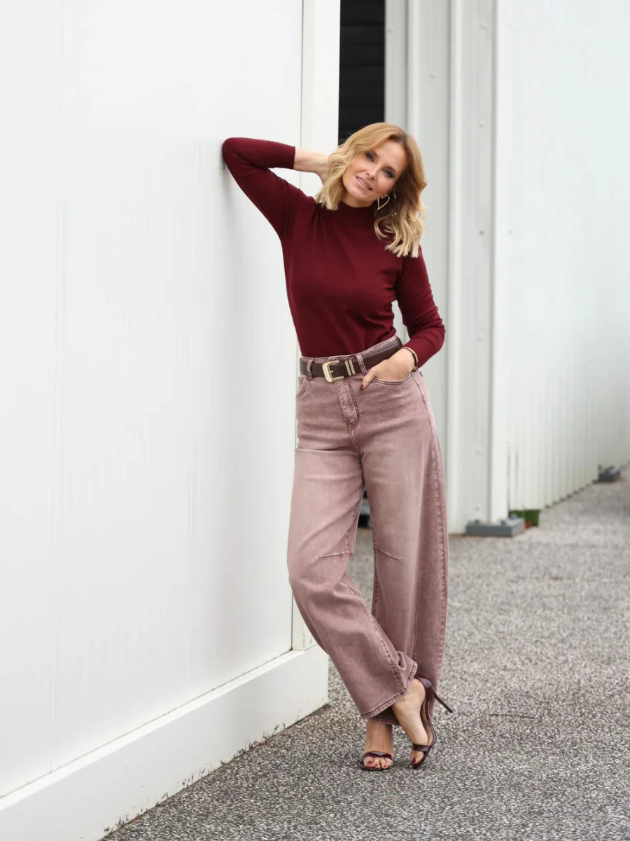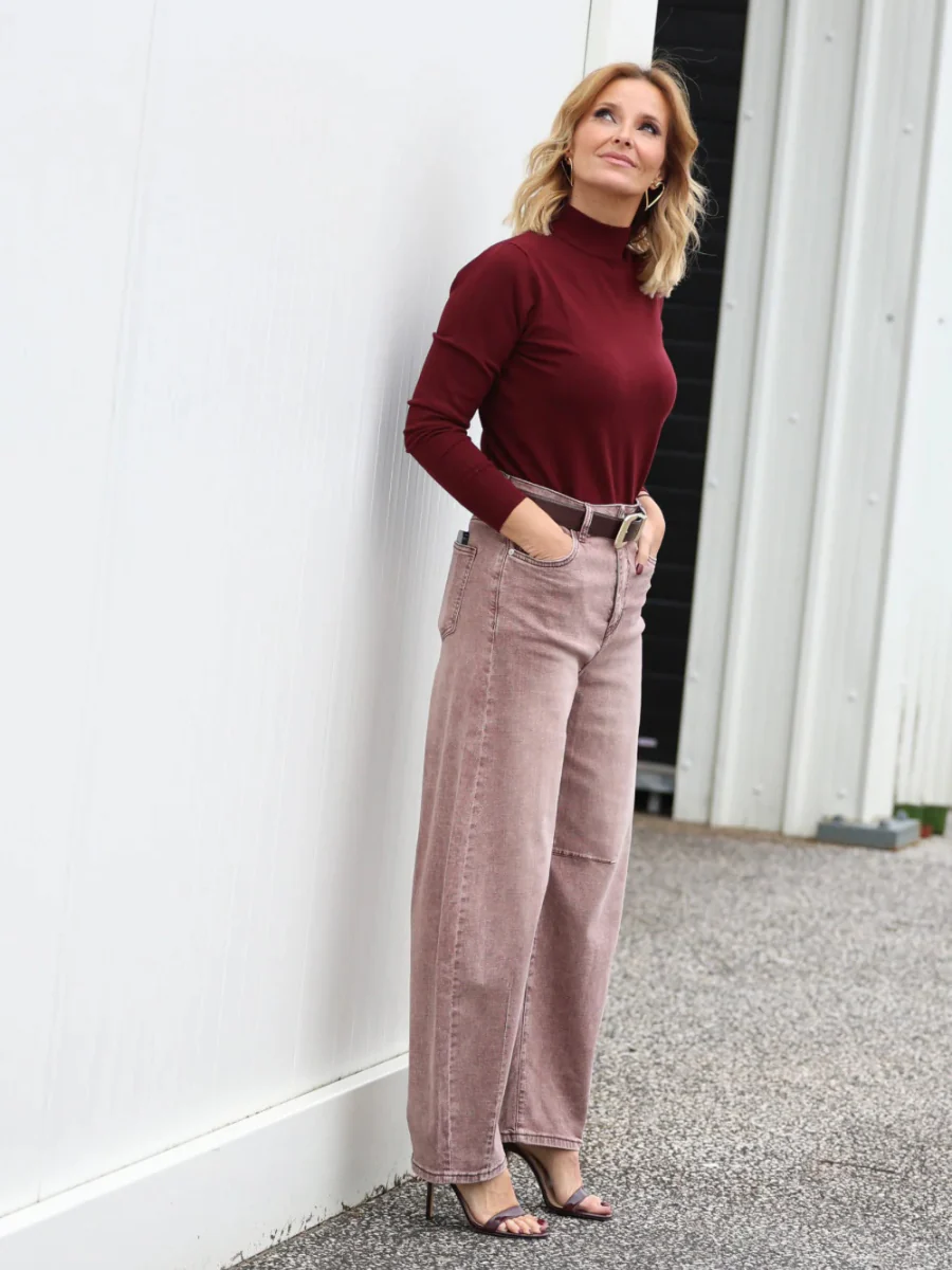 Jeans de cintura subida com perna larga e corte reto, desenhados para criar uma silhueta elegante e alongada. A lavagem clara em tom areia confere um acabamento moderno e versátil, perfeito para looks urbanos com um toque sofisticado. O design clássico de cinco bolsos garante conforto e intemporalidade.