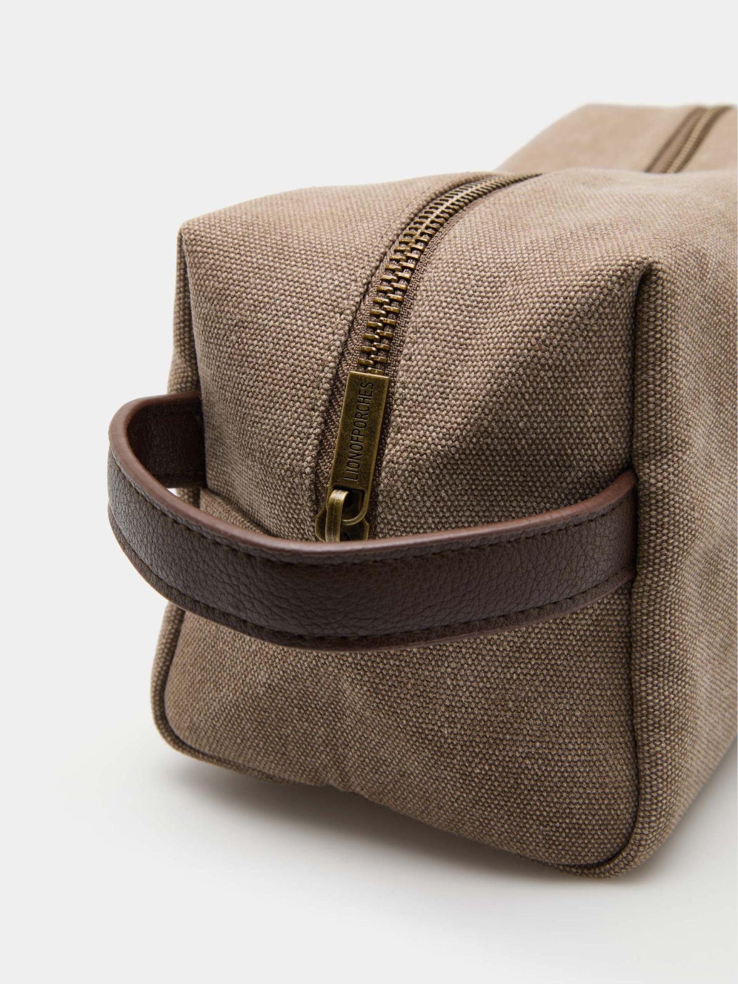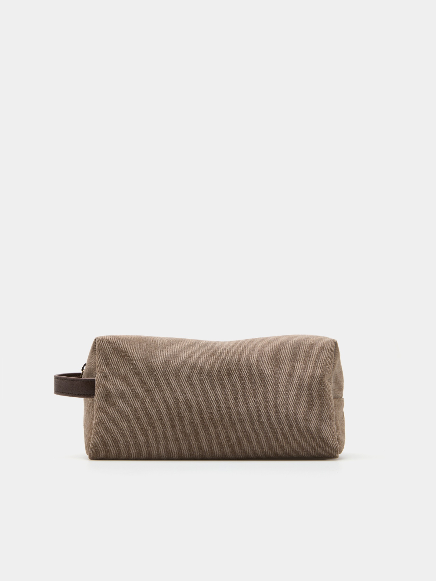 Necessaire de formato retangular, pensado para organizar e transportar os essenciais com facilidade. Apresenta uma abertura superior com fecho de correr e inclui uma pequena alça lateral, ideal para transportar de forma prática e confortável.
