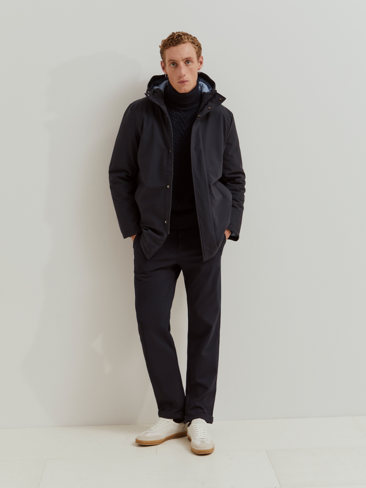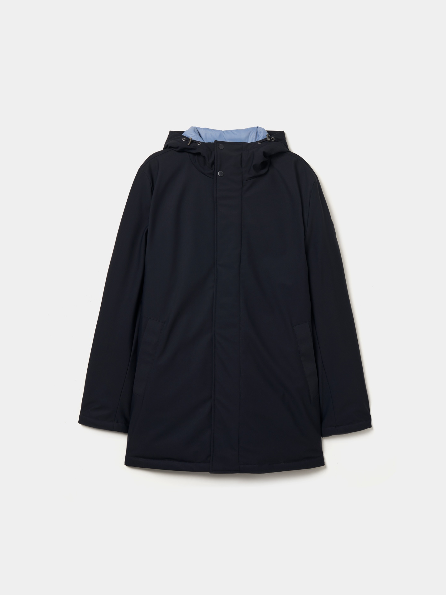 Parka acolchoada que aperta à frente com fecho de correr e molas de pressão. Inclui capuz com elásticos de ajuste e com forro interior em contraste. Apresenta dois bolsos na frente, bolso interior e o emblema da marca na manga esquerda. Combina conforto e funcionalidade num design moderno e prático.