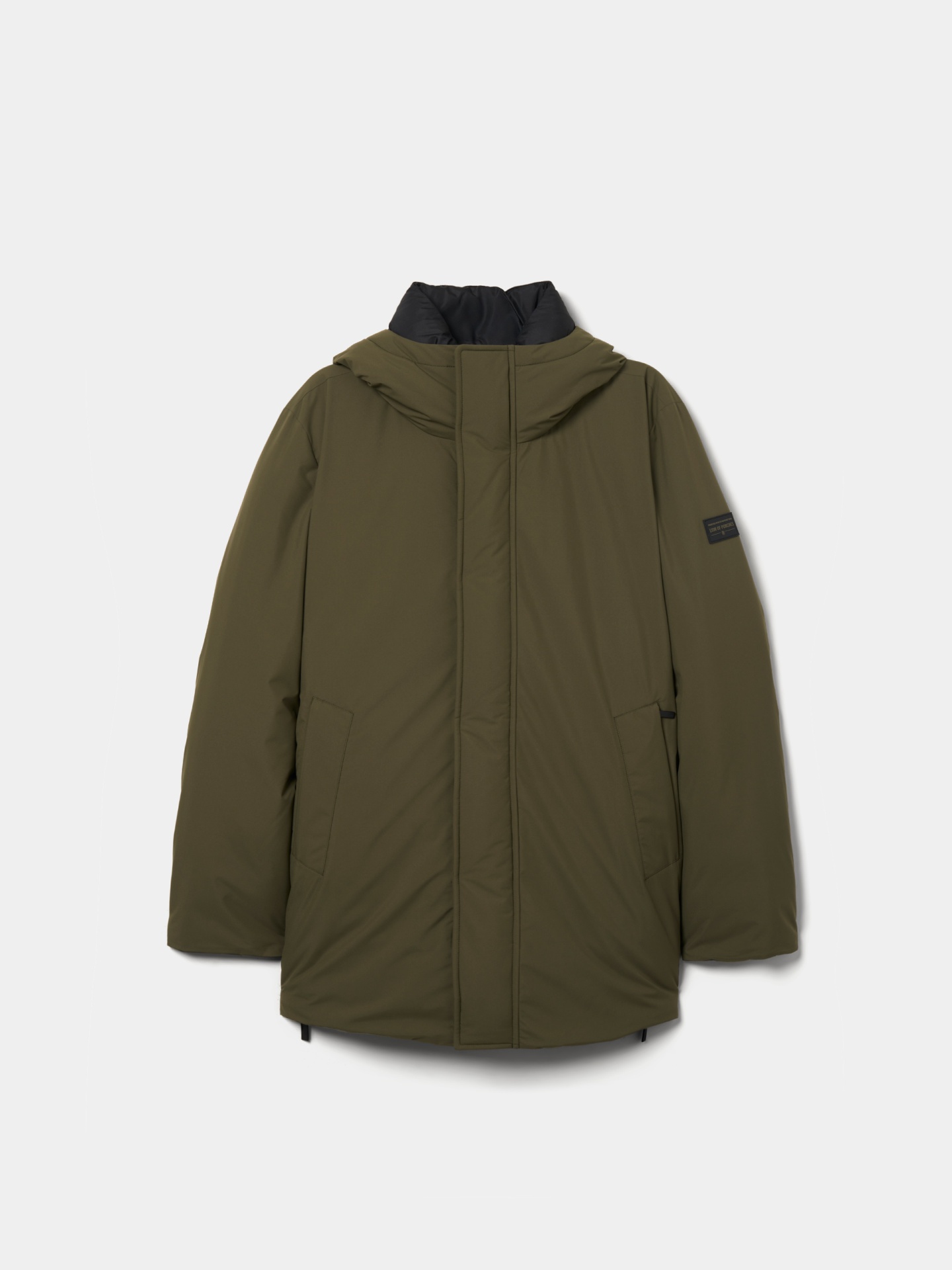 Funcionalidade e estilo unidos numa só peça. Esta parka acolchoada garante proteção e conforto nos dias mais frios, mantendo sempre um visual moderno. O fecho central com molas de pressão acrescenta praticidade, enquanto o capuz oferece maior resguardo contra o vento e a chuva. O emblema Lion Of Porches na manga esquerda e o branding no interior destacam a identidade da marca, reforçando o caráter exclusivo da peça.