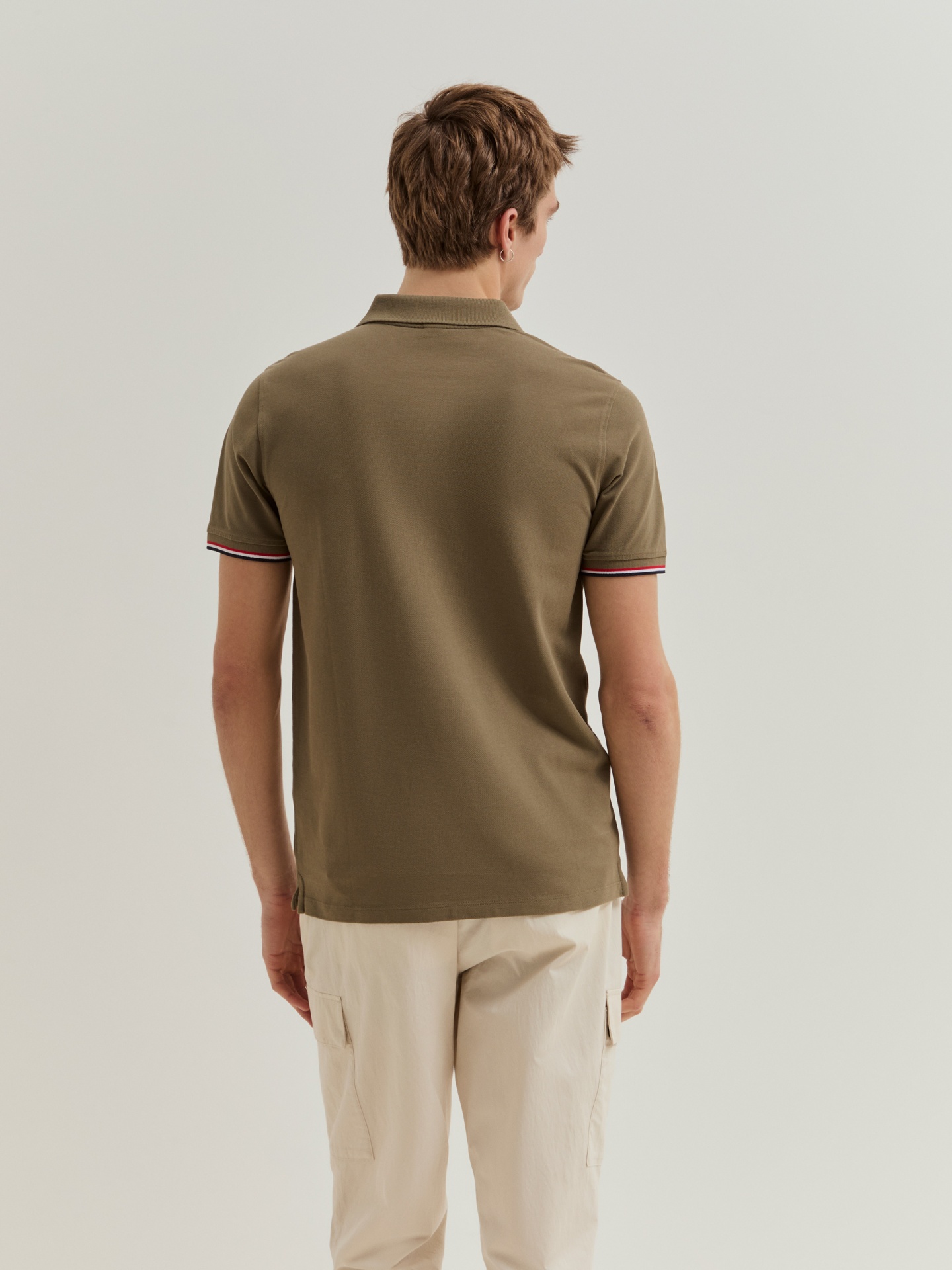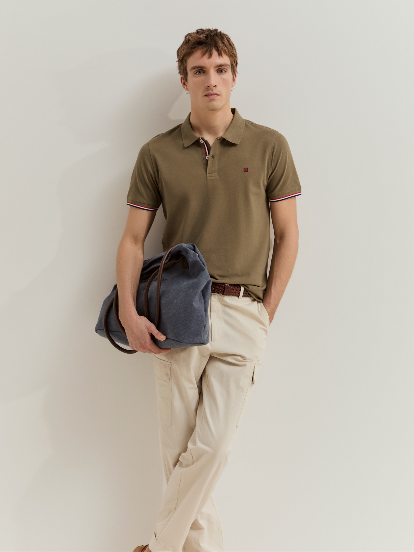 Polo de manga curta confecionada em 100% algodão. A gola com carcela de dois botões adiciona um toque clássico, enquanto as riscas no interior da carcela e o emblema da marca bordado no peito acrescentam um toque distintivo. Uma peça essencial que combina estilo e conforto.