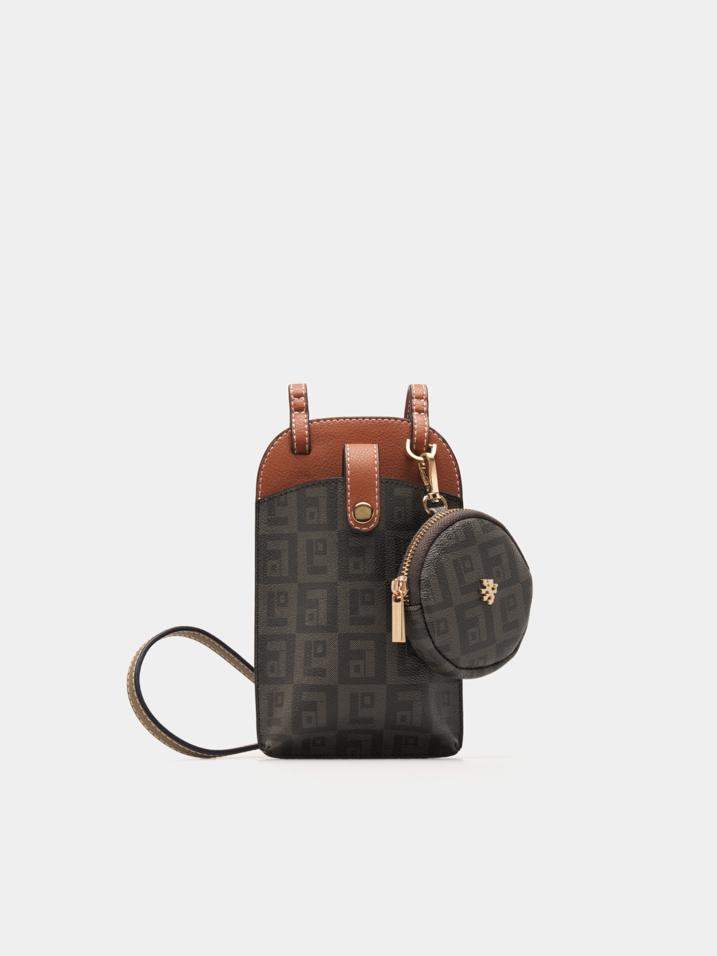 Compacto e funcional, este porta-telemóveis destaca-se pelo seu padrão de monograma integral em tons escuros e pelos elegantes acabamentos em contraste. Apresenta uma pequena bolsa circular removível, ideal para moedas ou pequenos essenciais, e ranhuras para cartões na parte posterior que garantem uma organização funcional. Com uma alça fina ajustável e detalhes em ferragens douradas, é o acessório perfeito para elevar um look contemporâneo com um toque de distinção e conveniência.