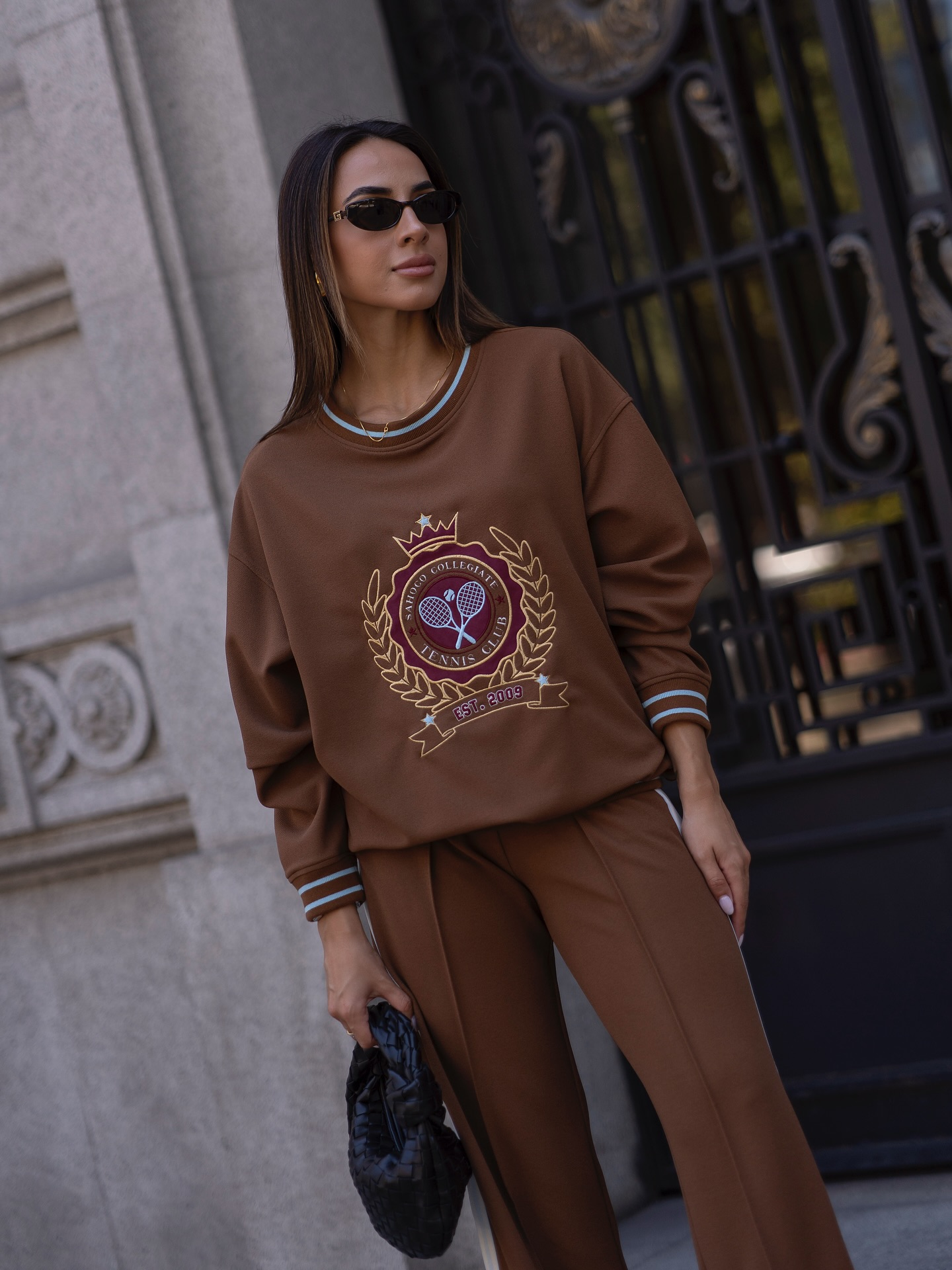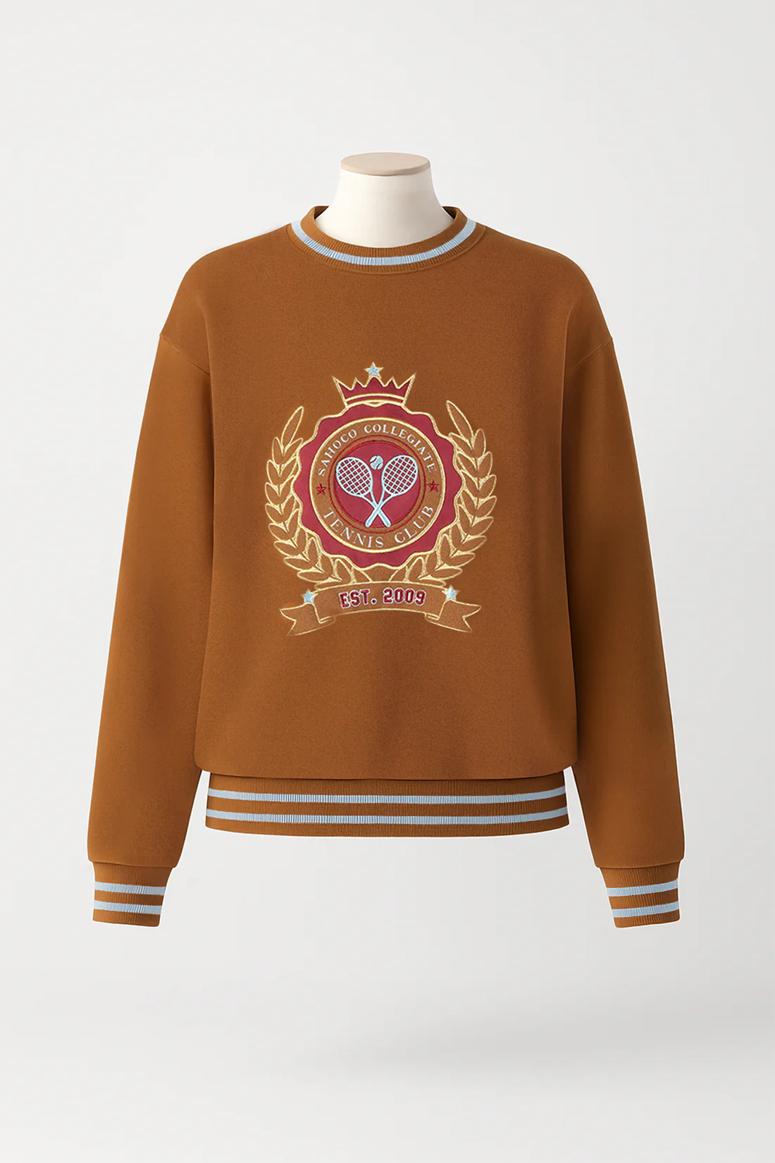 Sweatshirt Sahoco em tom camel com bordado collegiate exclusivo, inspirada no estilo universitário. Confortável e moderna, com detalhes em malha canelada nos punhos e gola, é perfeita para um look casual premium. Combine com jeans ou calças de corte reto para um estilo urbano sofisticado.