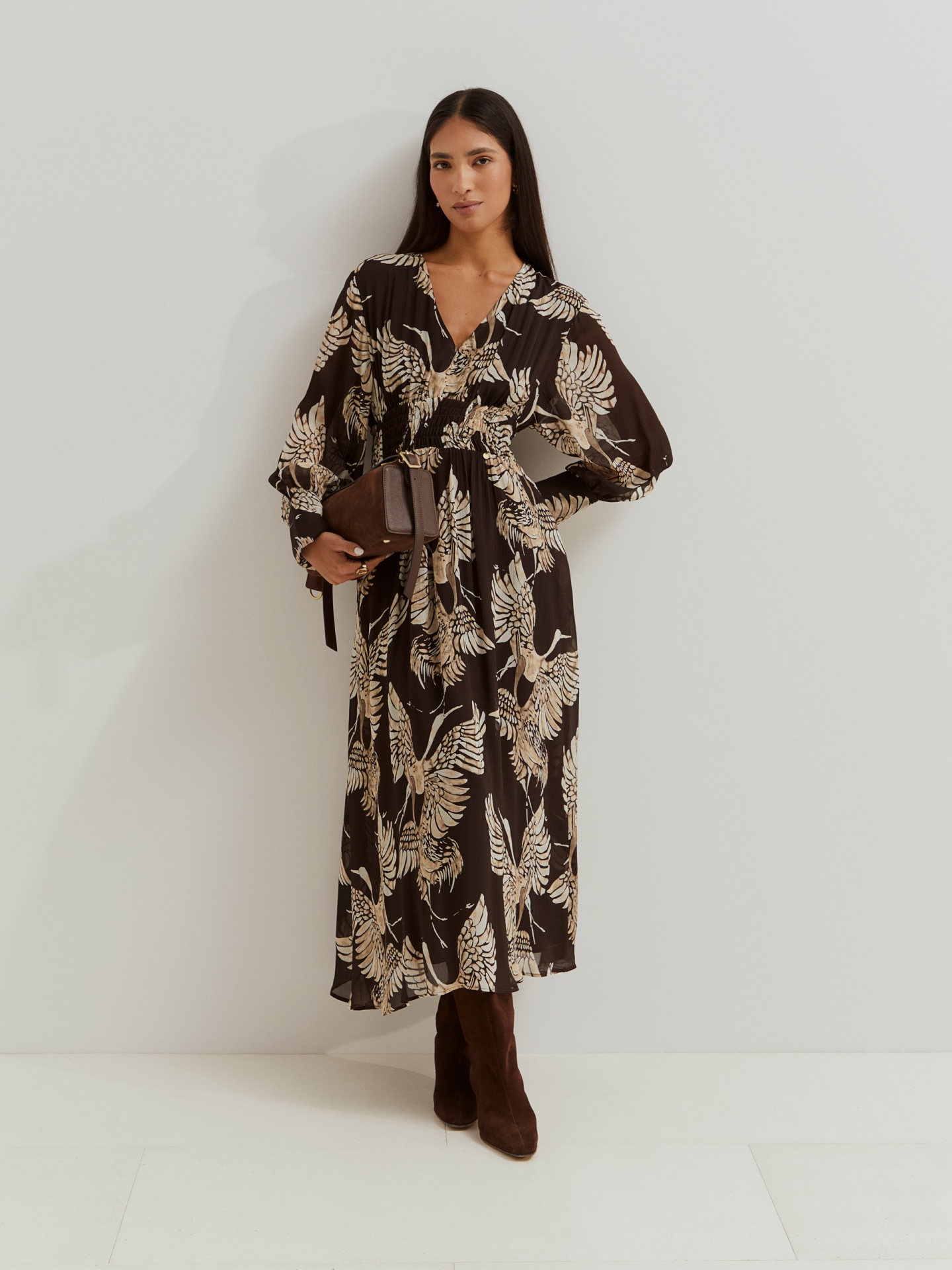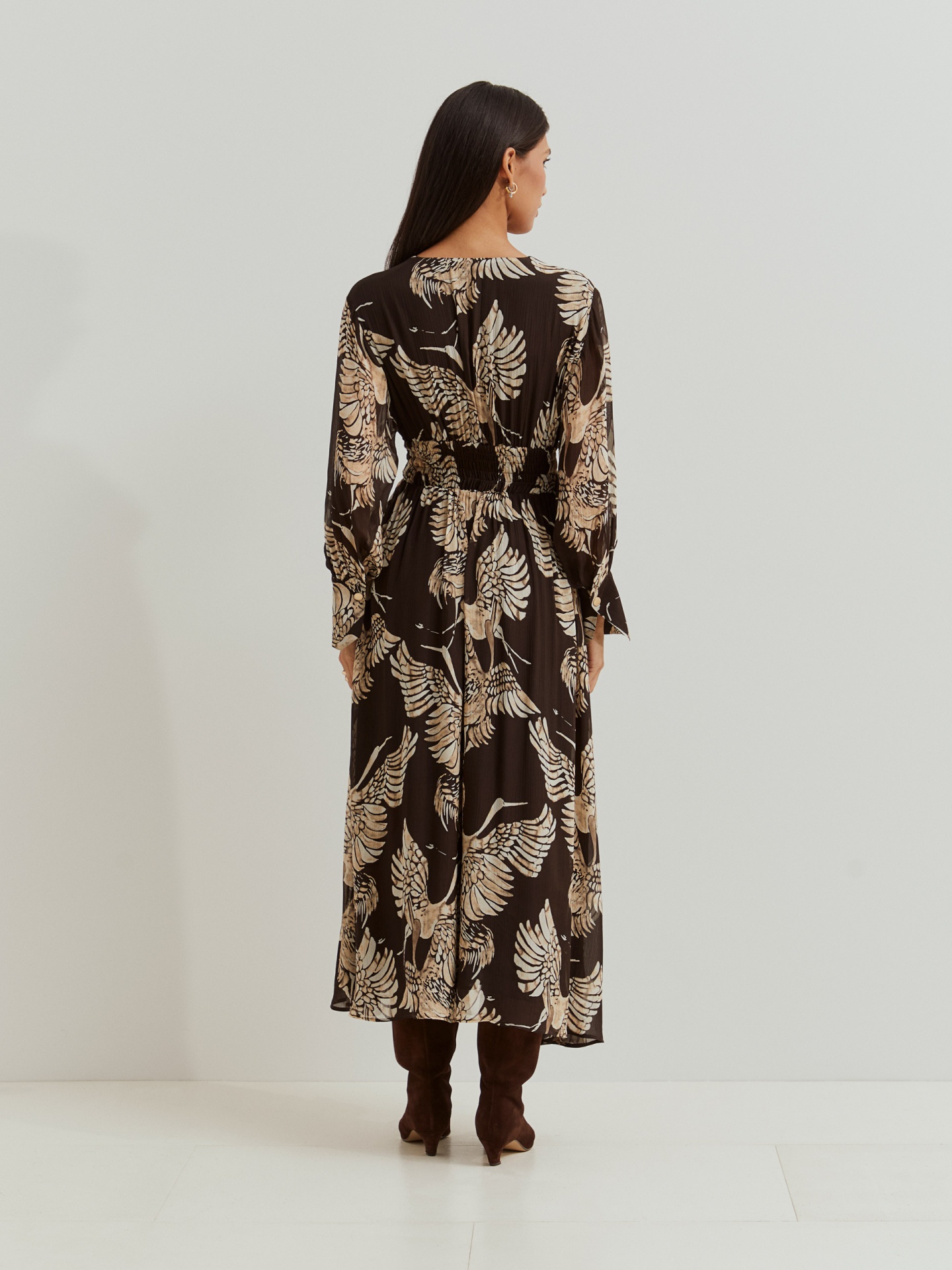 Vestido Comprido Estampado com Decote em V Lion of Porches